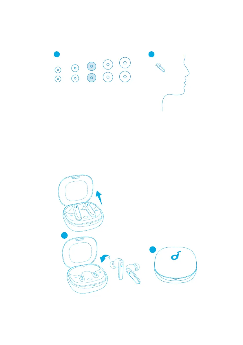 2. 将耳机塞入您的耳道并轻轻转动,直到您找到最舒适且固定的位置。