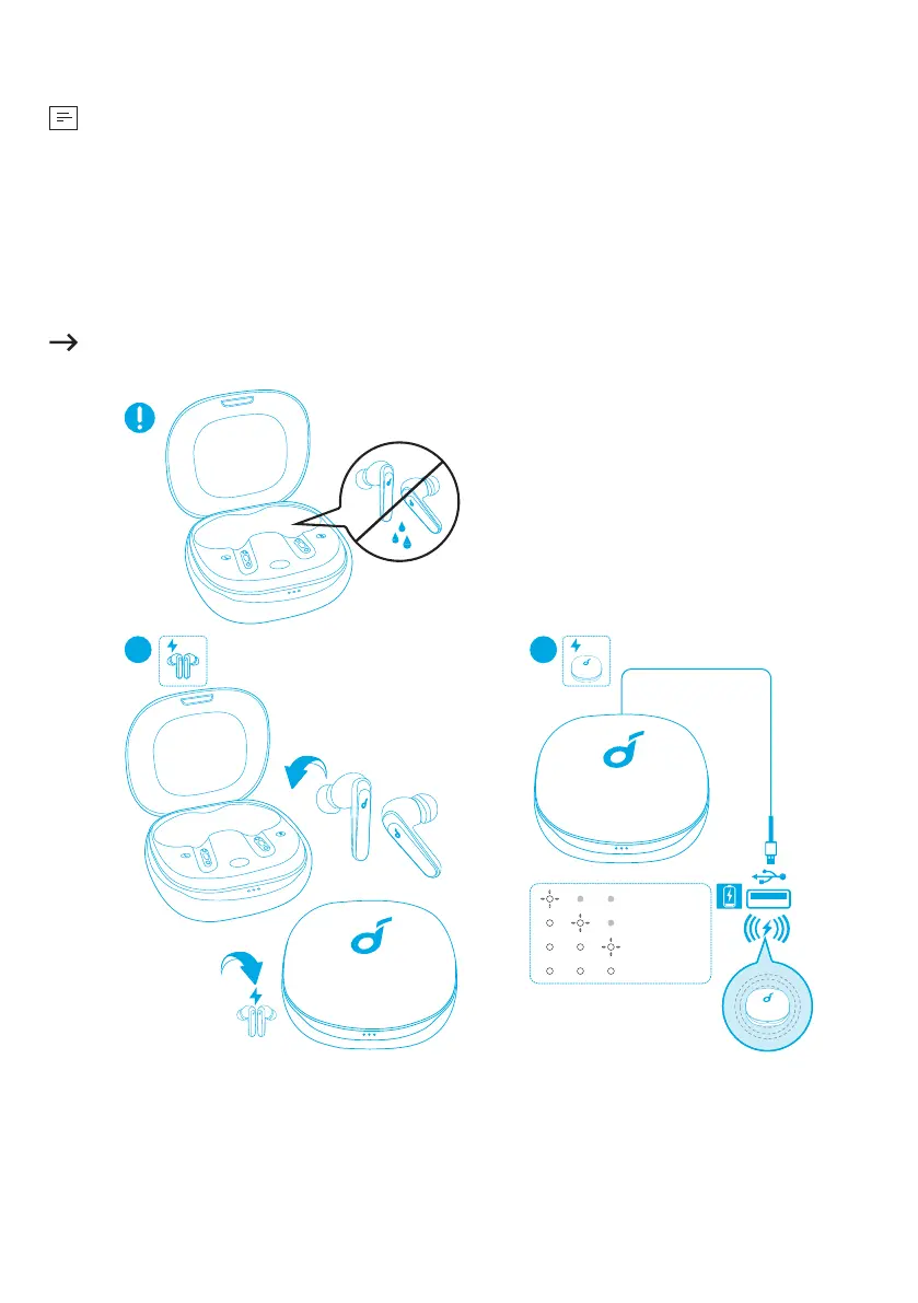 充電之前,請先將耳機和USB連接埠完全擦乾。
