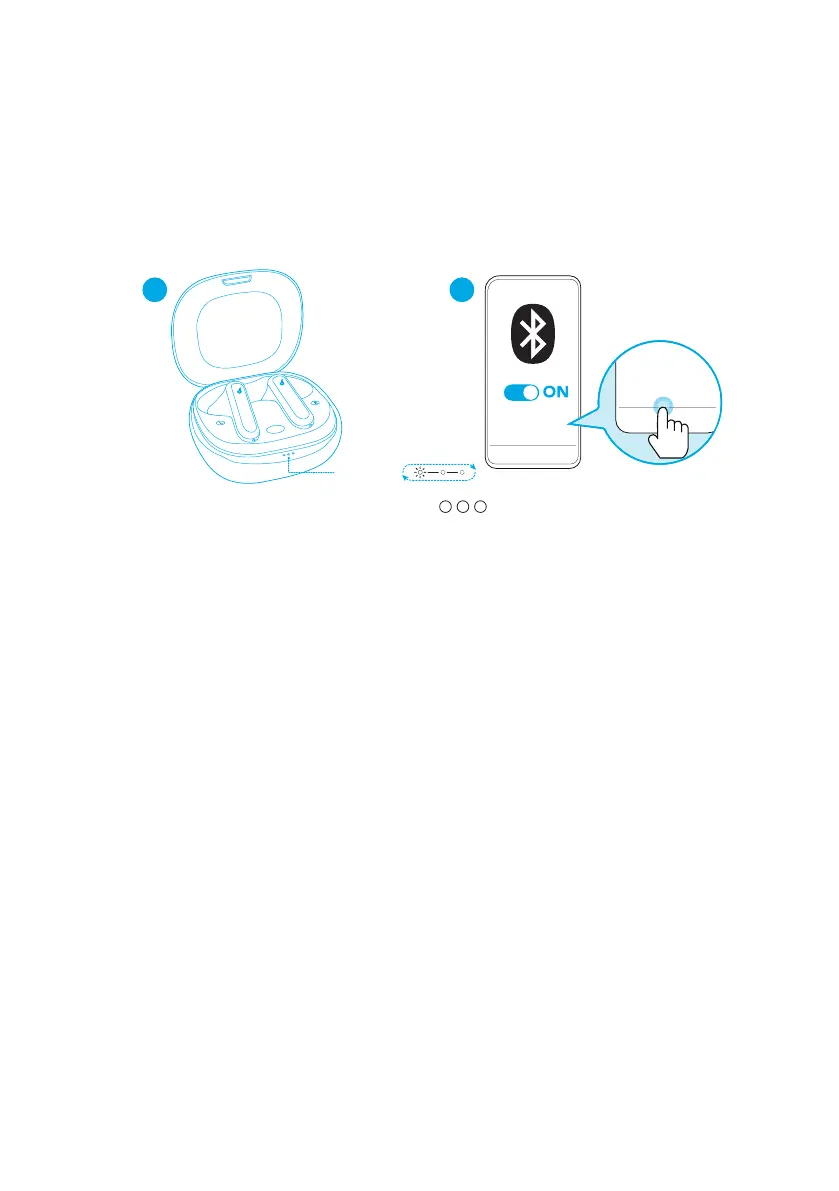 1. Åbn opladeetuiet, og øretelefonerne vil automatisk gå i Bluetooth-parringstilstand.