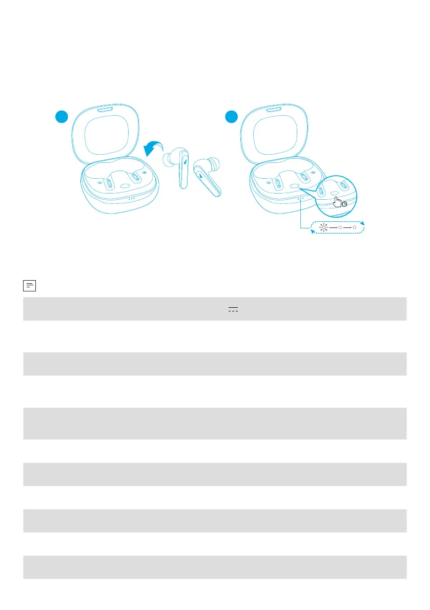 1. Plaats de oordopjes in het oplaaddoosje en laat het doosje openstaan.