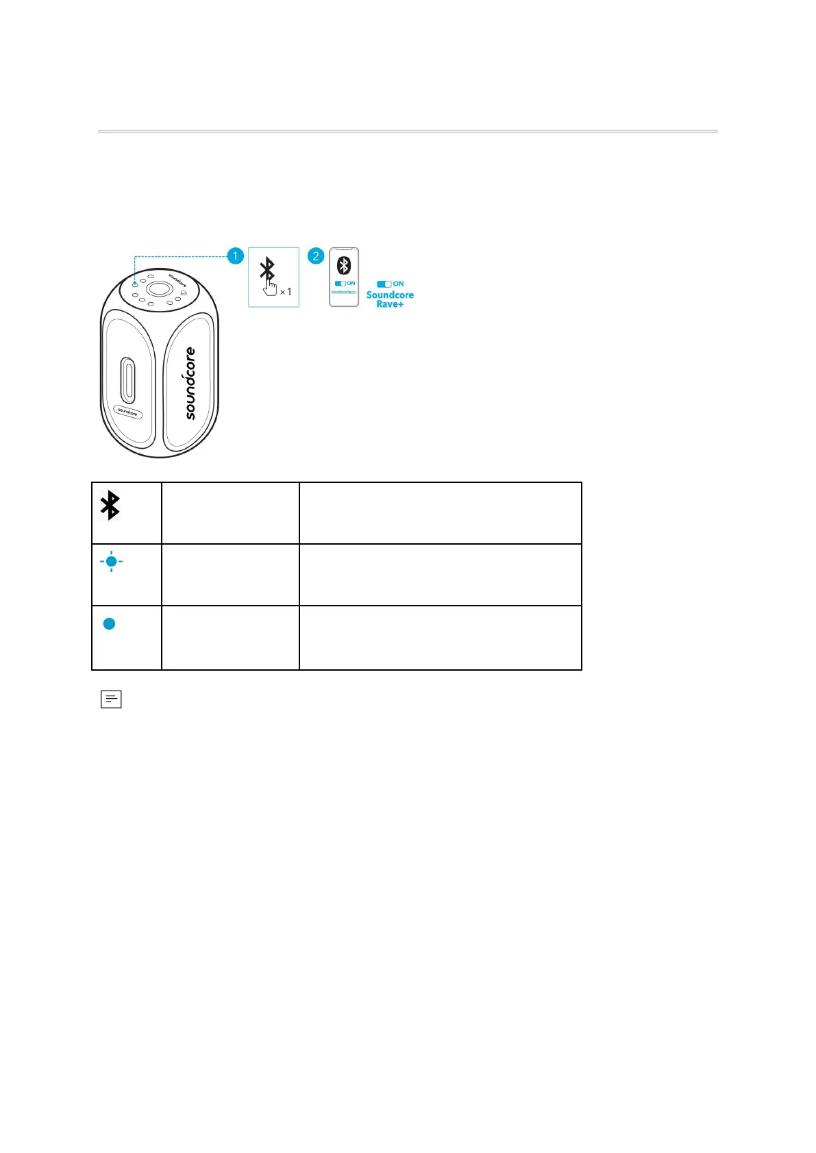 1. Stiskněte a podržte tlačítko Bluetooth 2 sekundy na reproduktoru Soundcore Rave+, který je nyní