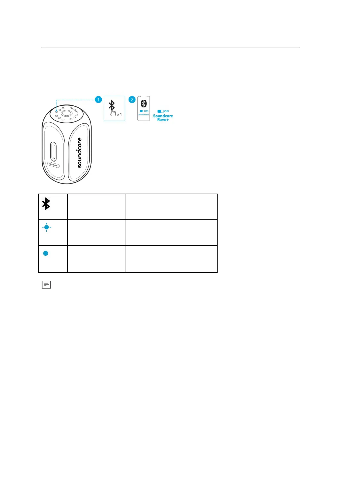 1. Press and hold the Bluetooth button for 2 seconds on the Soundcore Rave+ that’s currently