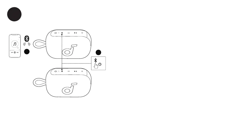 With one speaker connected to a smartphone, press and hold the Bluetooth