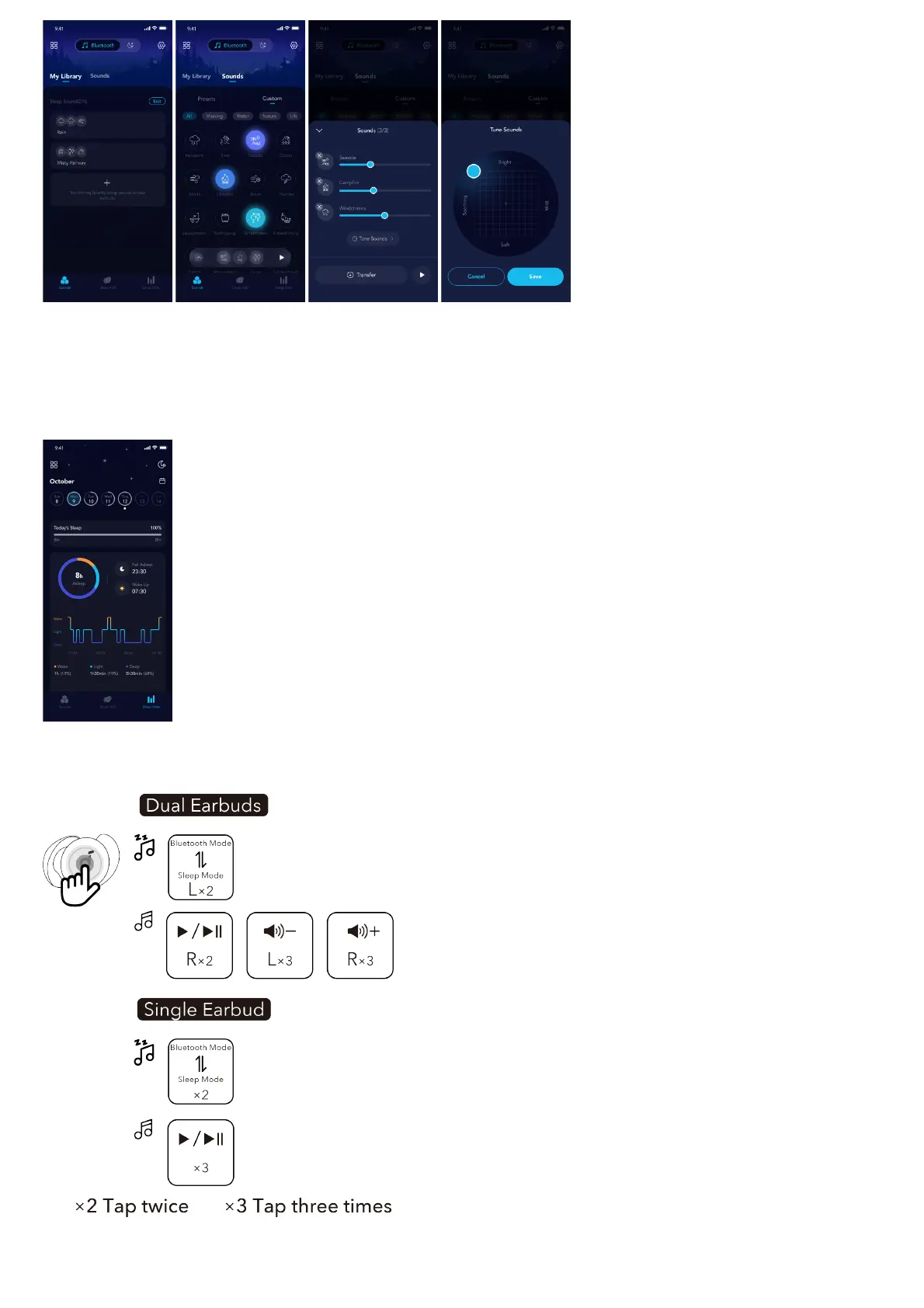 • Sleep Monitoring: The earbuds can monitor your sleep data (including sleep stage, sleep positions and the frequency of rolling over) to provide a detailed
