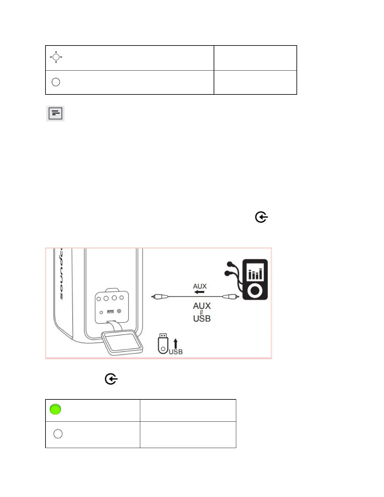 AUX in mode and USB mode.