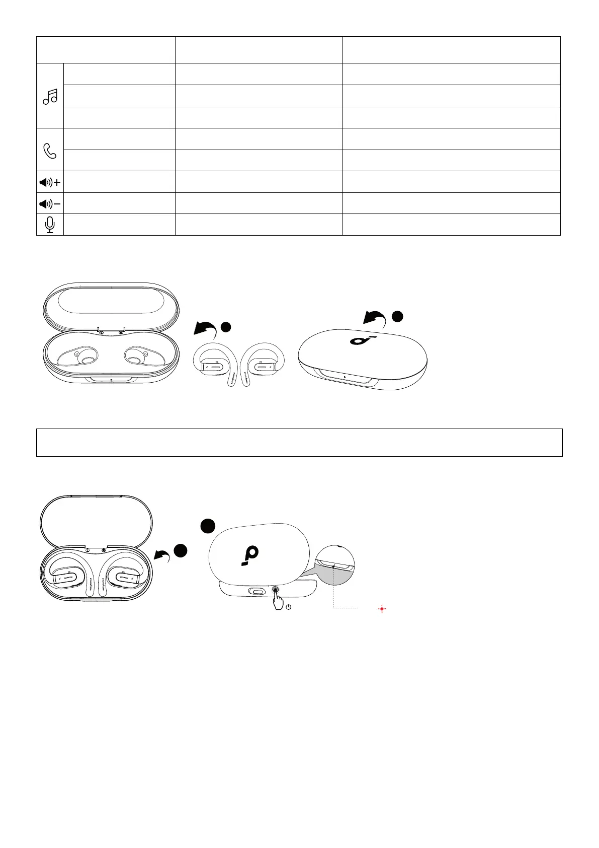 case open. Press and hold the reset button on the charging case for 10 seconds until the LED indicator on the