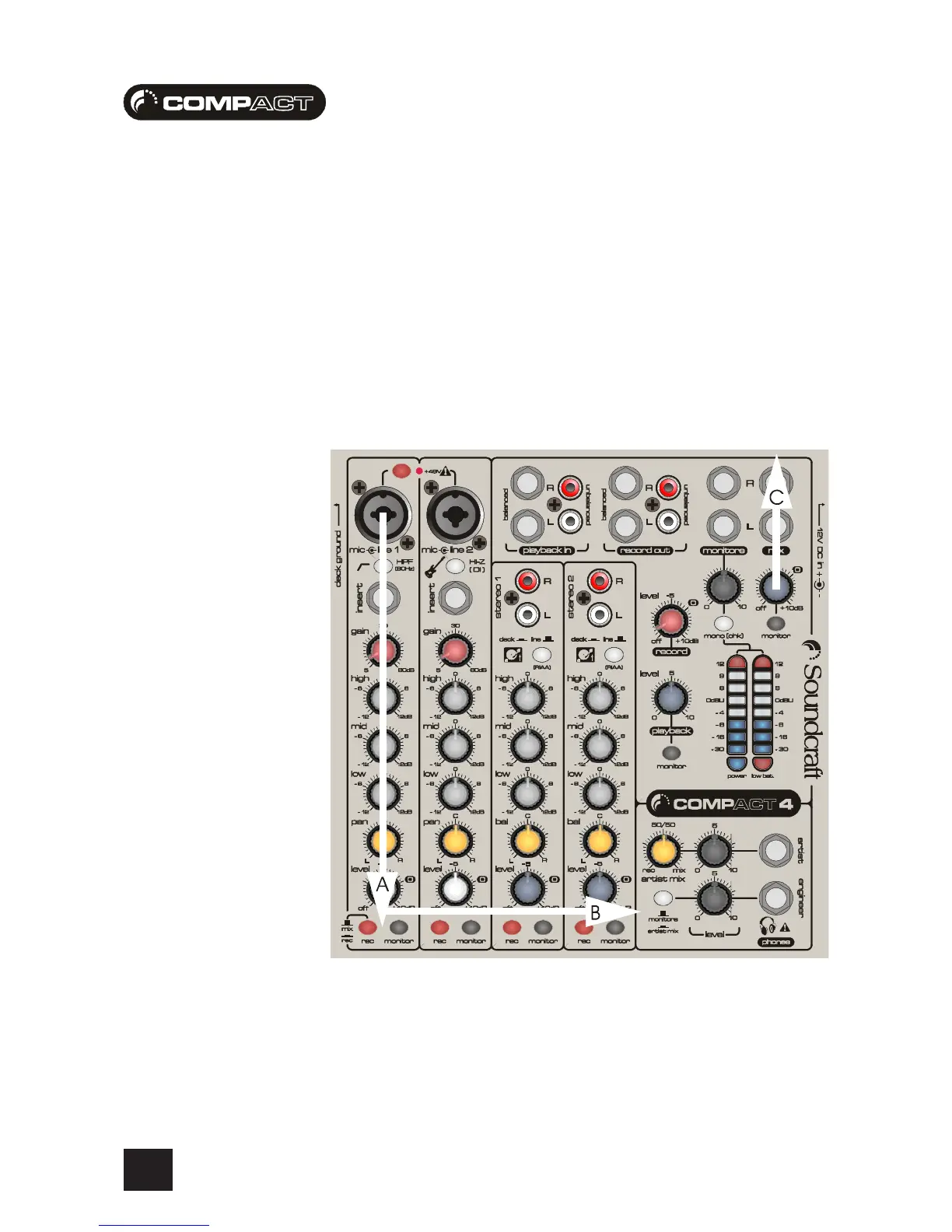 C - The mix output level control to the mix outputs
