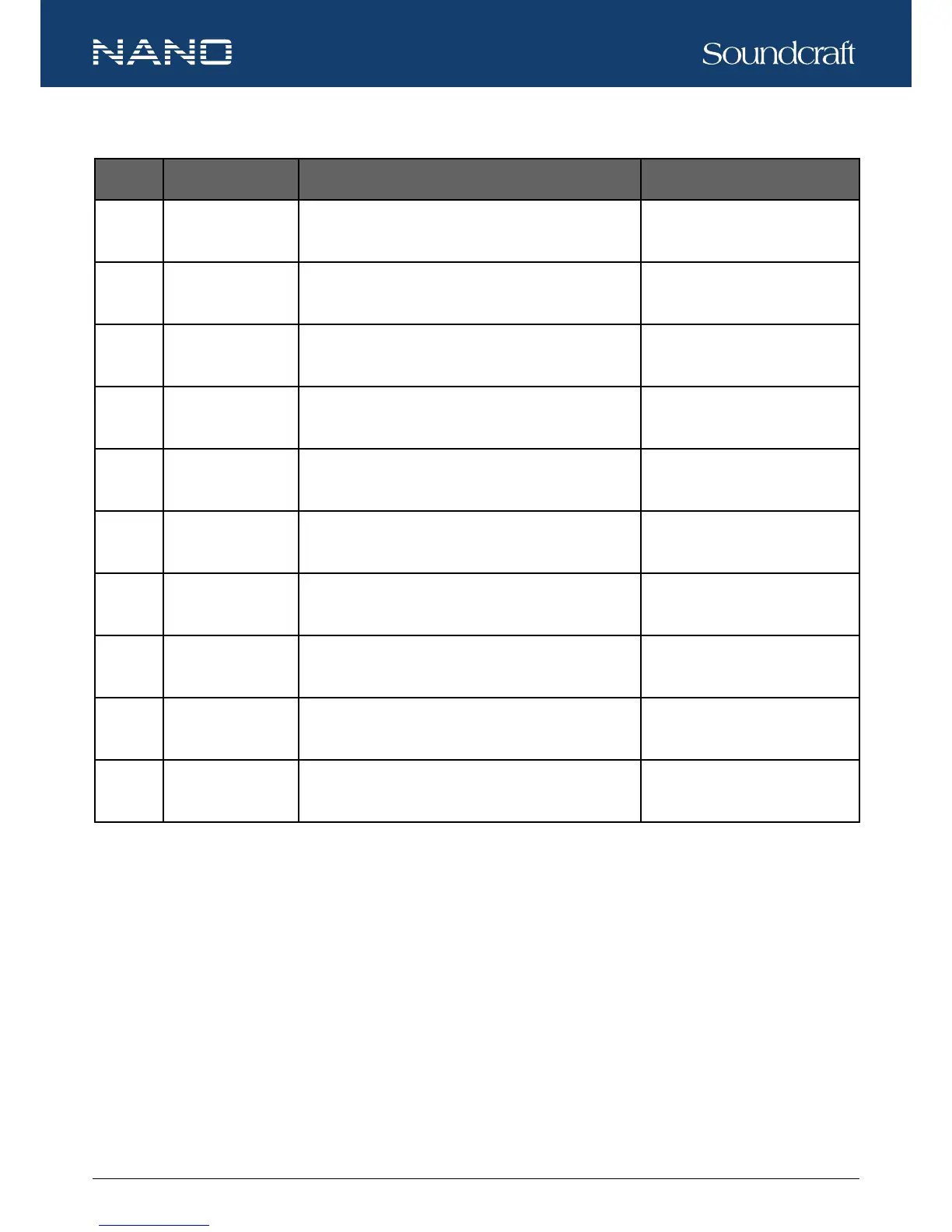 NO. PRESET DESCRIPTION PARAMETER