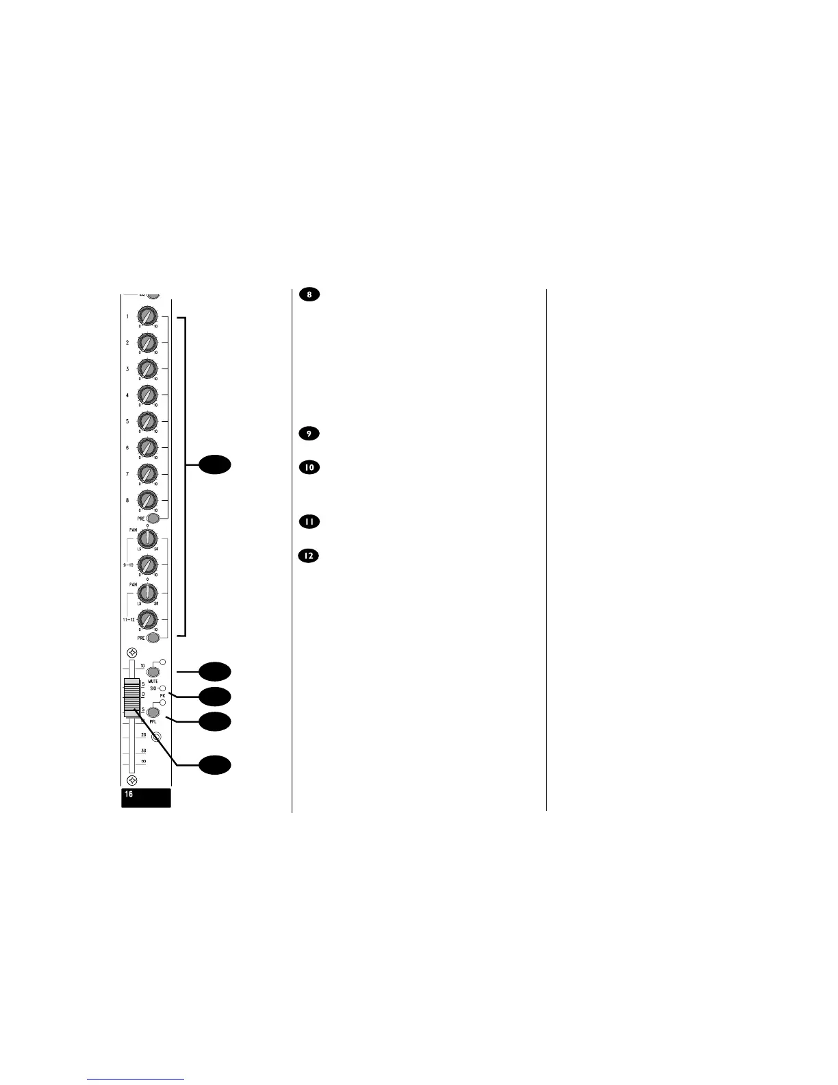 sends (1-8) and two stereo pairs (9/10 & 11/12). Each group of sends is