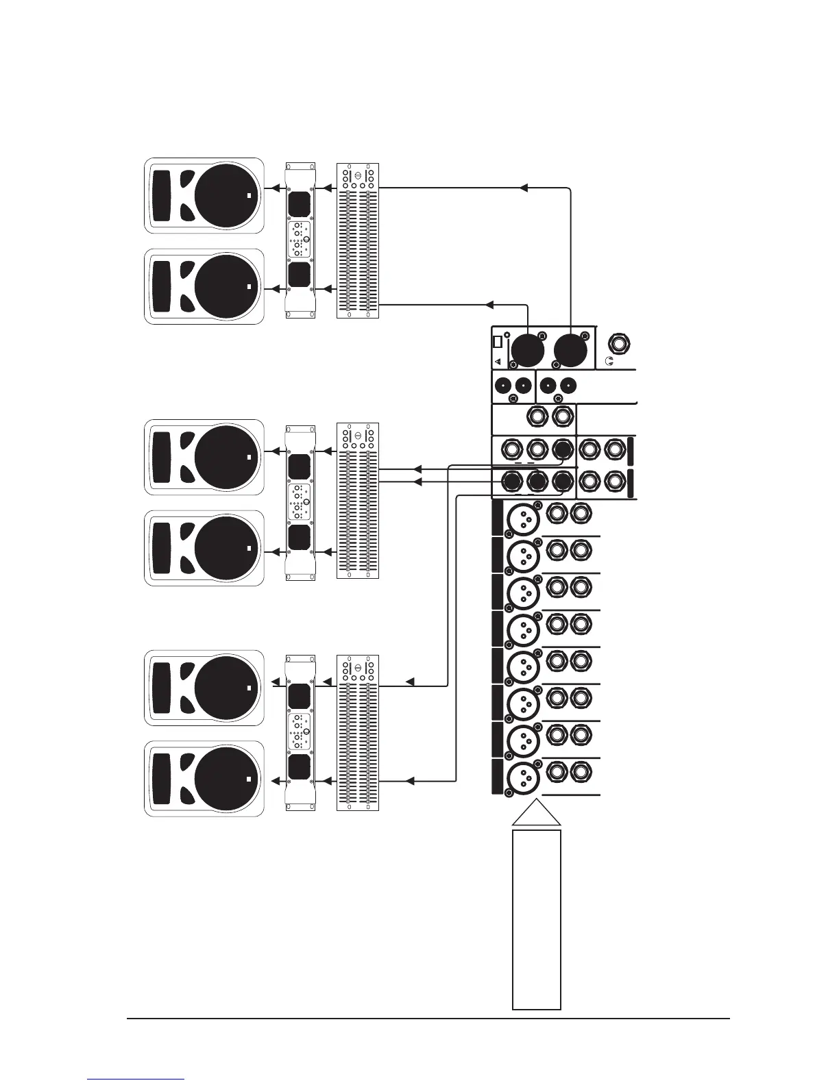 This configuration demonstrates how multiple speaker configurations can be driven by the MFXi.