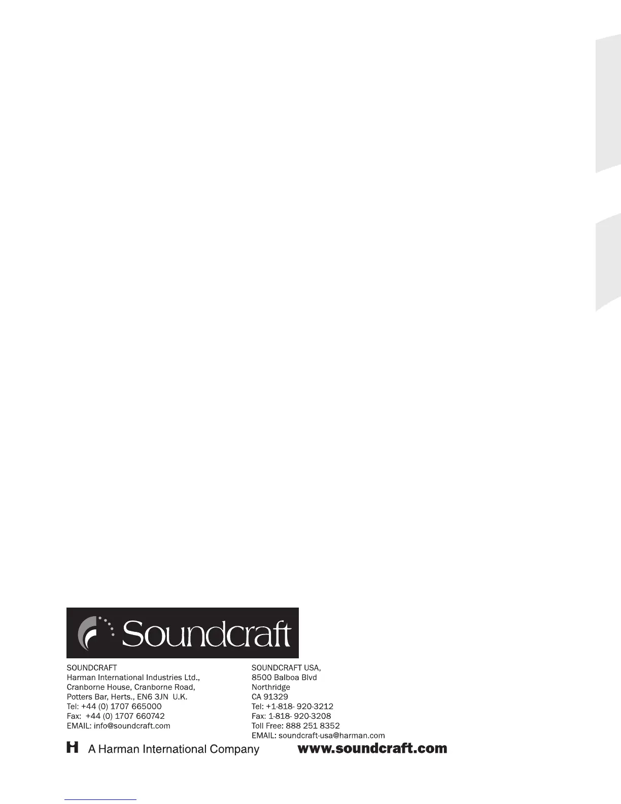 Thank you for purchasing a Soundcraft® mixer. Please visit WWW.SOUNDCRAFT.COM/REGISTER