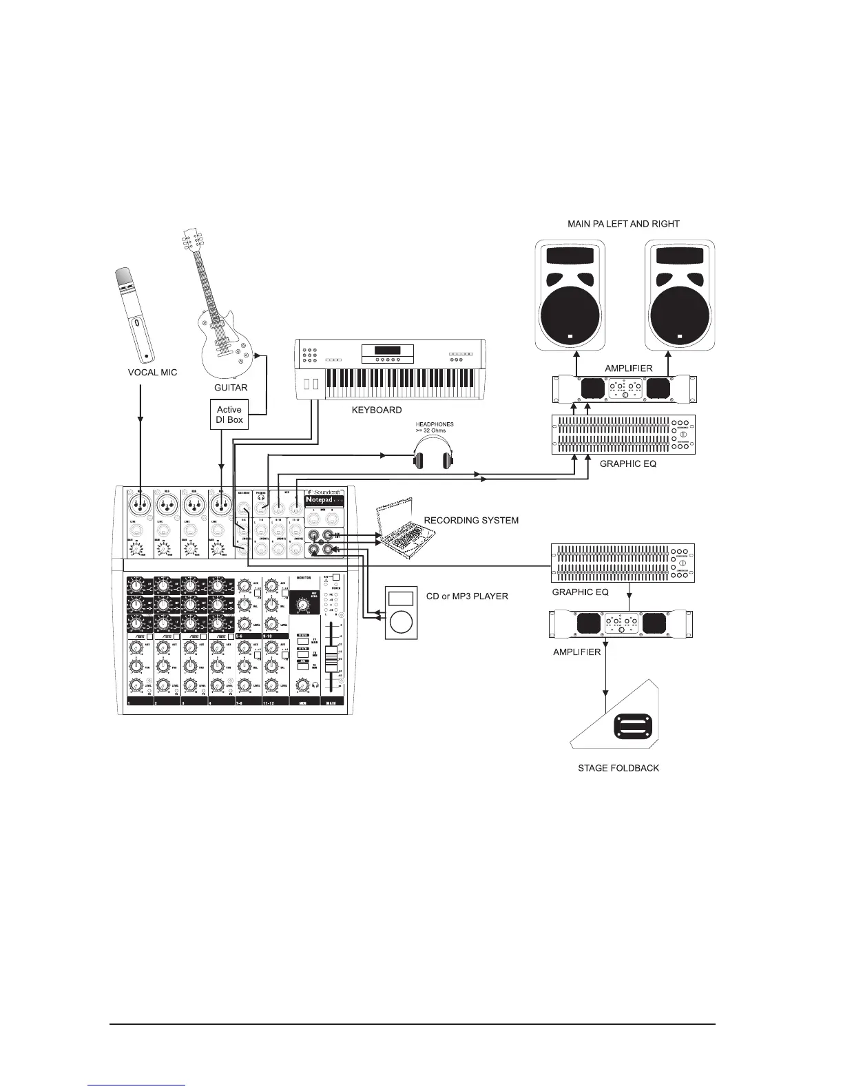 SoundCraft Notepad 124 - APPLICATIONS; APPLICATION EXAMPLE - LIVE SOUND REINFORCEMENT