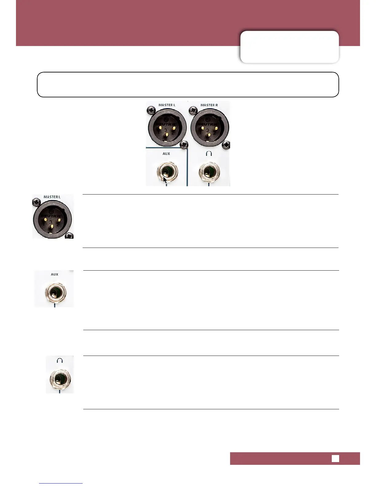 Auxiliary output connector - quarter-inch TRS Jack labelled AUX.