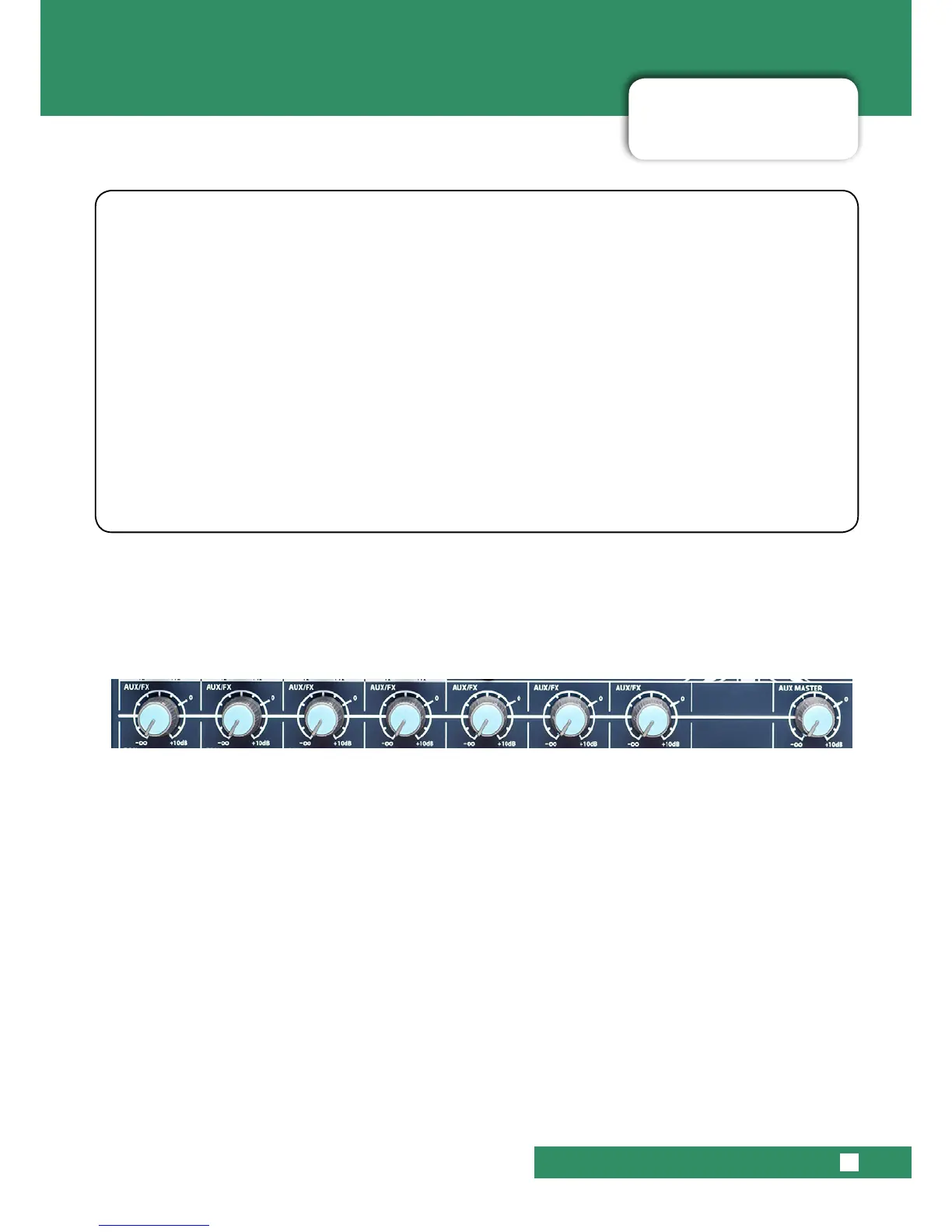 The Aux Bus sum is sent to the Aux Master output level control. This sum is made up of the aux send