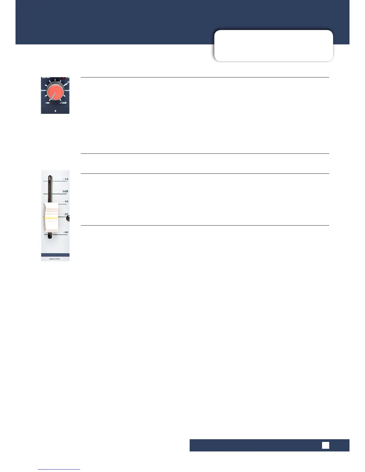 +10dB when rotated all the way to the right.) The 0dB line indicates unity or no level change. Rotary level knobs are