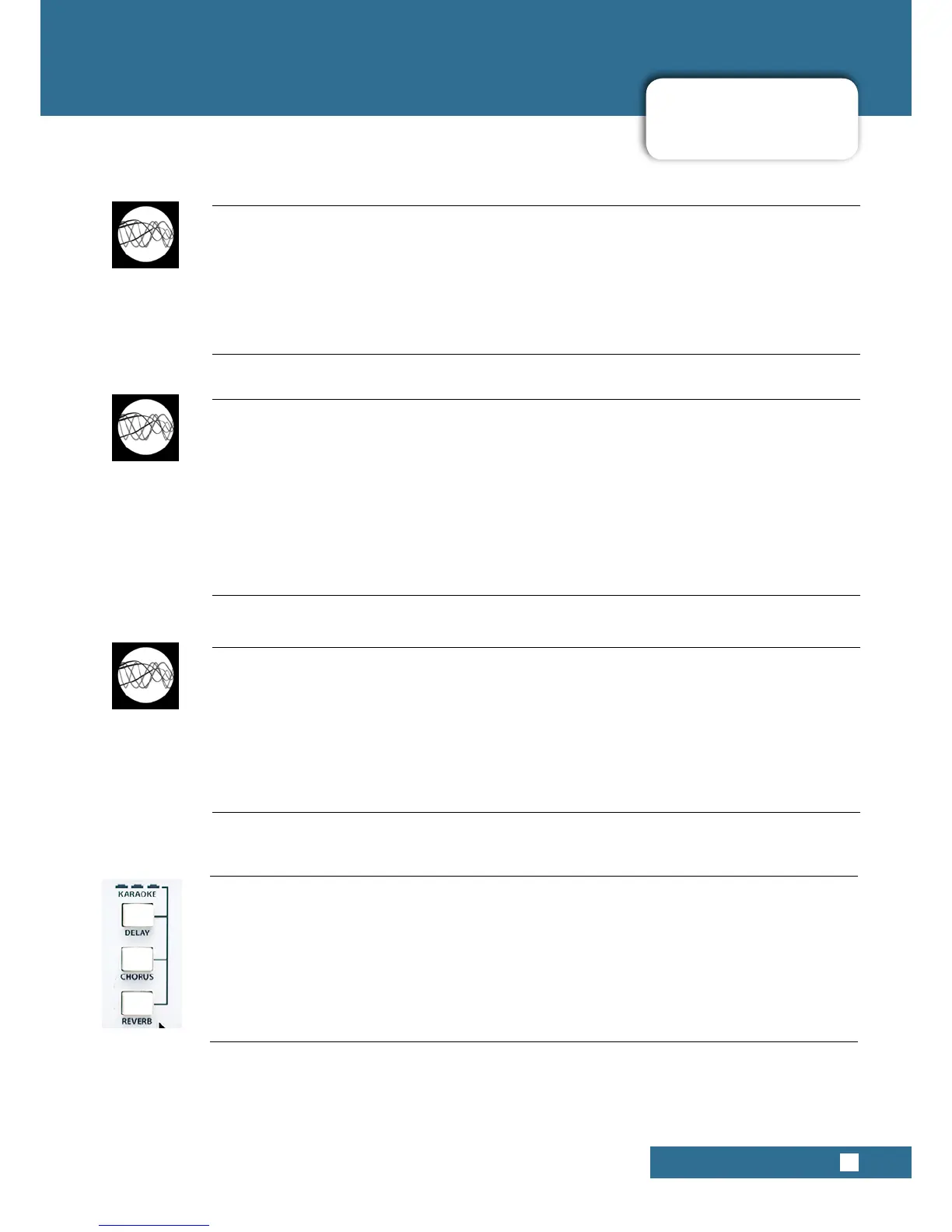 Pressing down Delay, Chorus and Reverb loads a simple to use slap-echo processing eect for use in Karaoke sit-