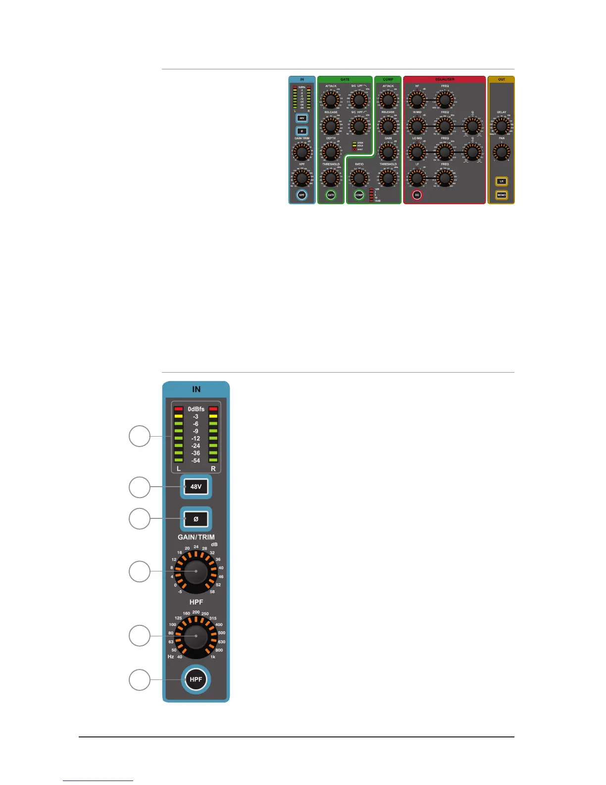 HPF (inputs only). Has no effect until the ‘HPF’ lter is switched IN.
