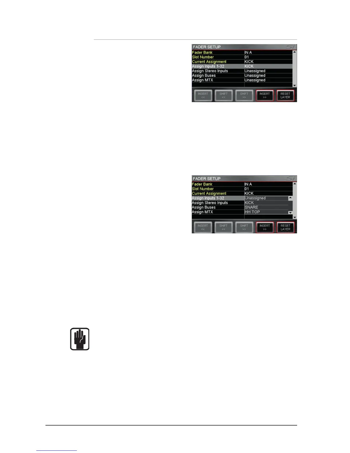 NOTE: Fader assignments are stored per show.