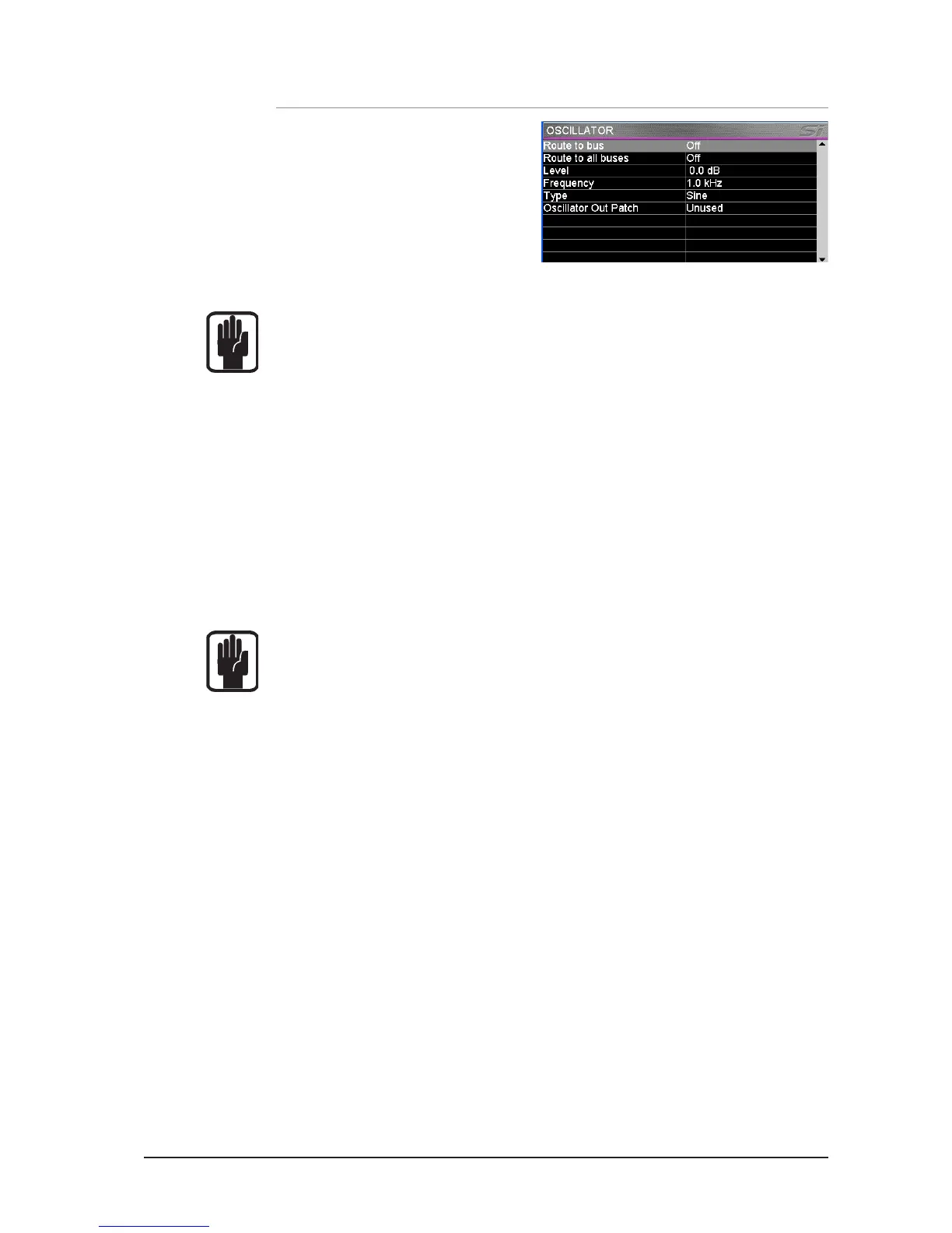 NOTE: Oscillator settings default to Off following a power cycle.