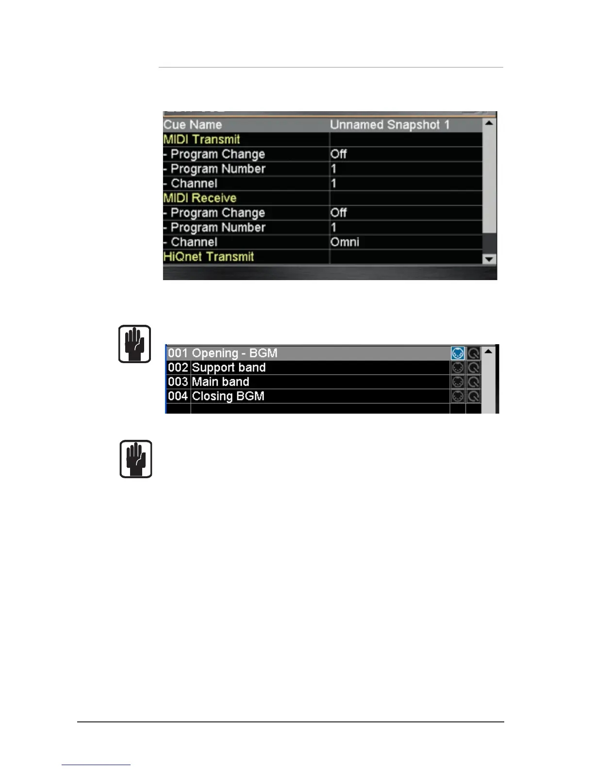 NOTE: In the event two or more cues are set to receive the same program change on the