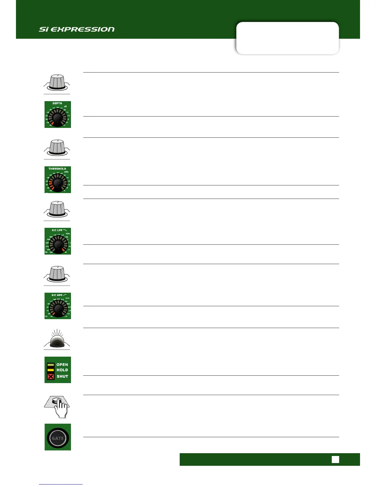 OPEN (inactive - the gate is passing signal and audio is above the threshold), HOLD (the gate is passing signal but