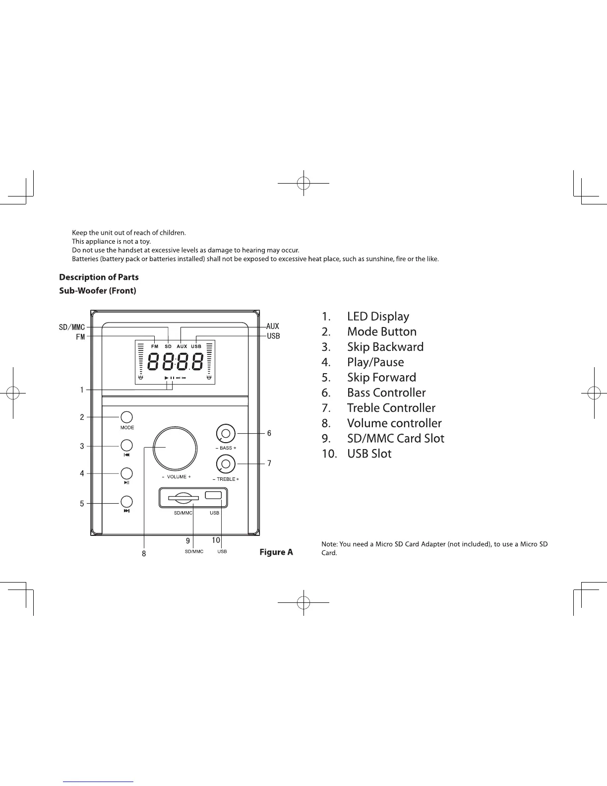 SoundLogic XT BCS-2/5711 - Description of Parts