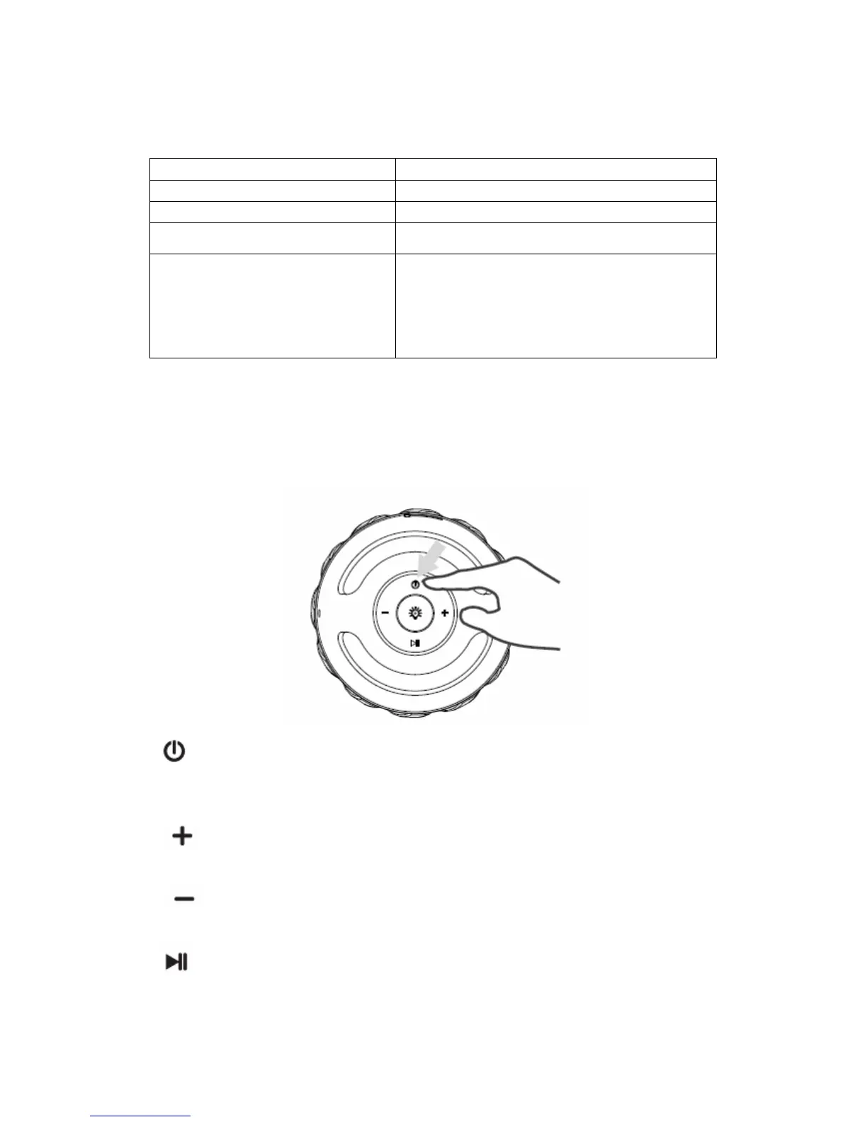 Outputpower:5W Built‐inlithiumbattery:3.7V1800mAh