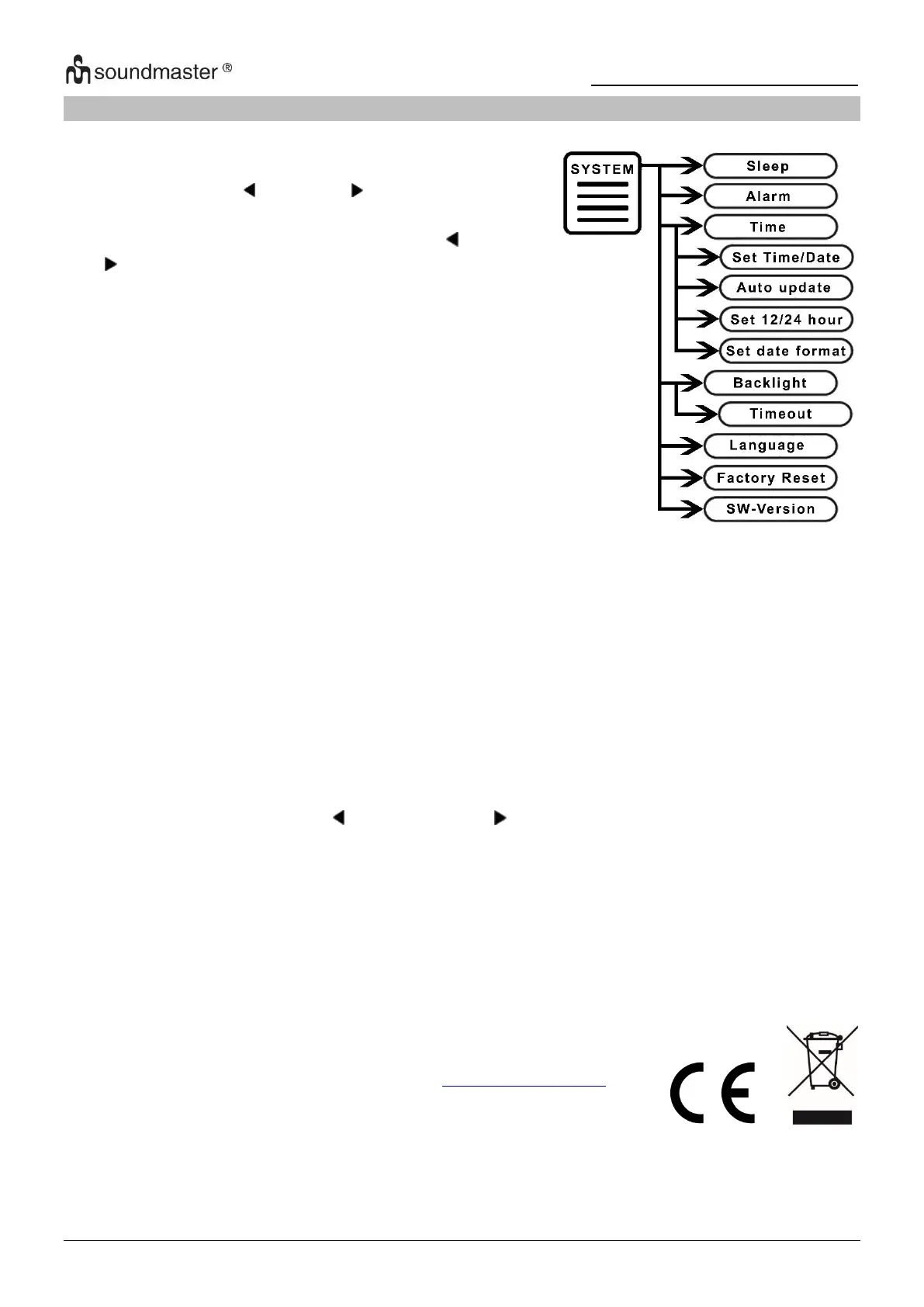 - “Auto update”: Aggiornare l’ora scegliendo tra “Qualsiasi” (DAB o FM), DAB, FM,