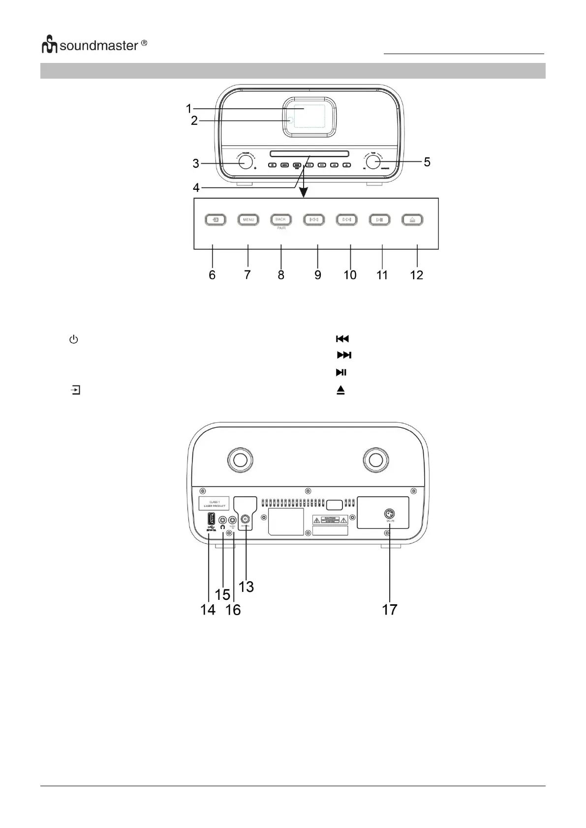 SOUNDMASTER DAB970 - Device Controls Overview; Front View Controls; Back View Connections