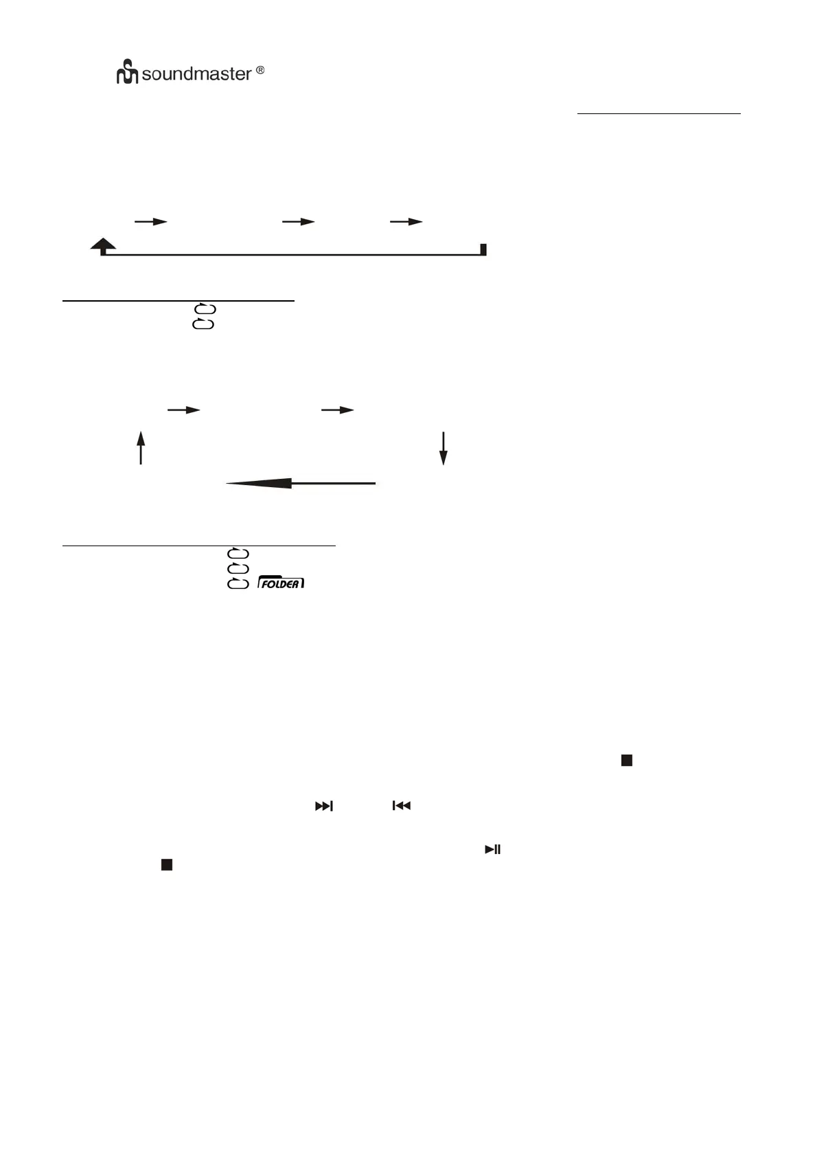 Press the “ Play Mode ” button (18) during playback to select repeat and random function, a single track, all the tracks repeat or