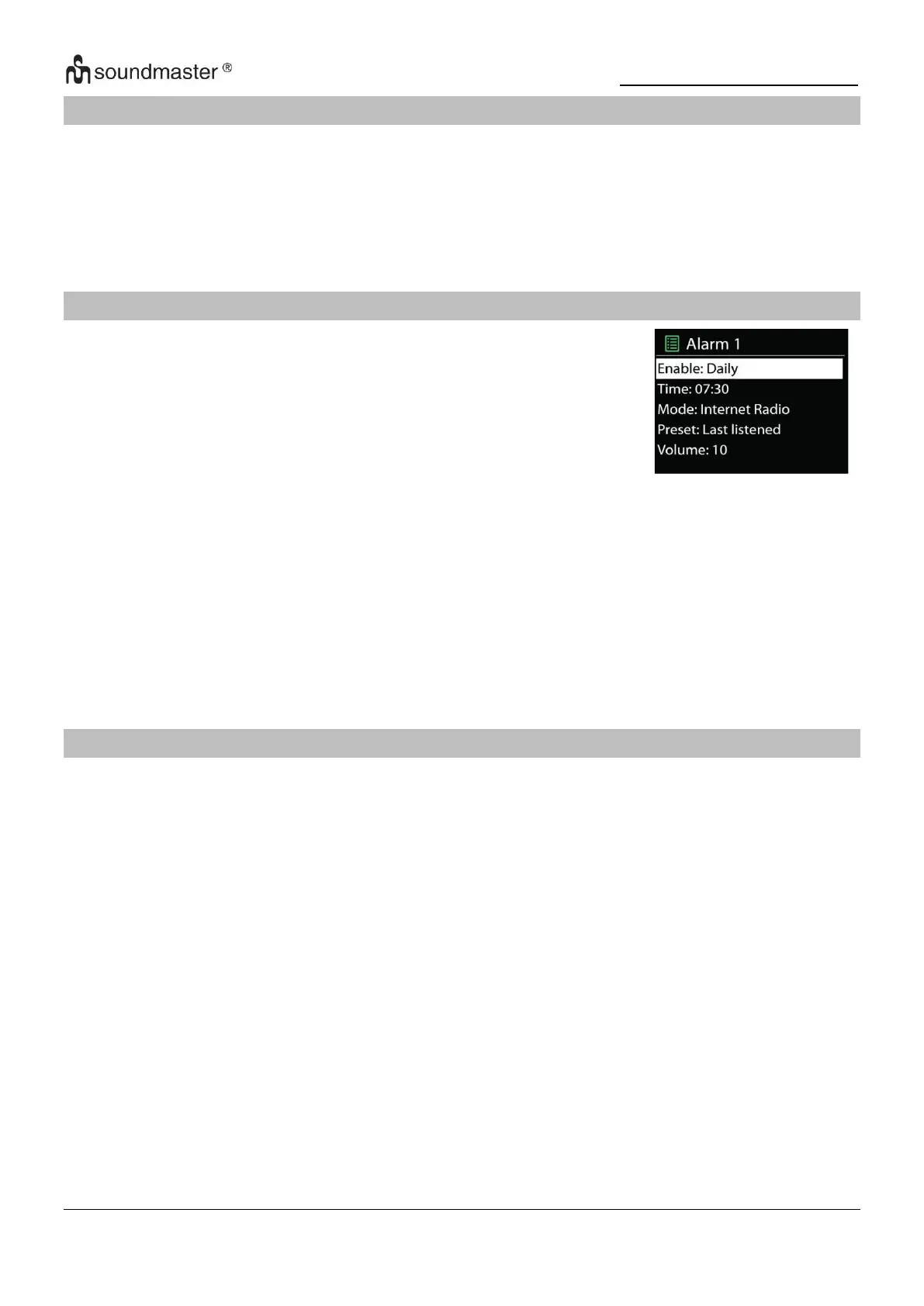 • Režim: Bzučák, internetové rádio, CD, DAB nebo FM,