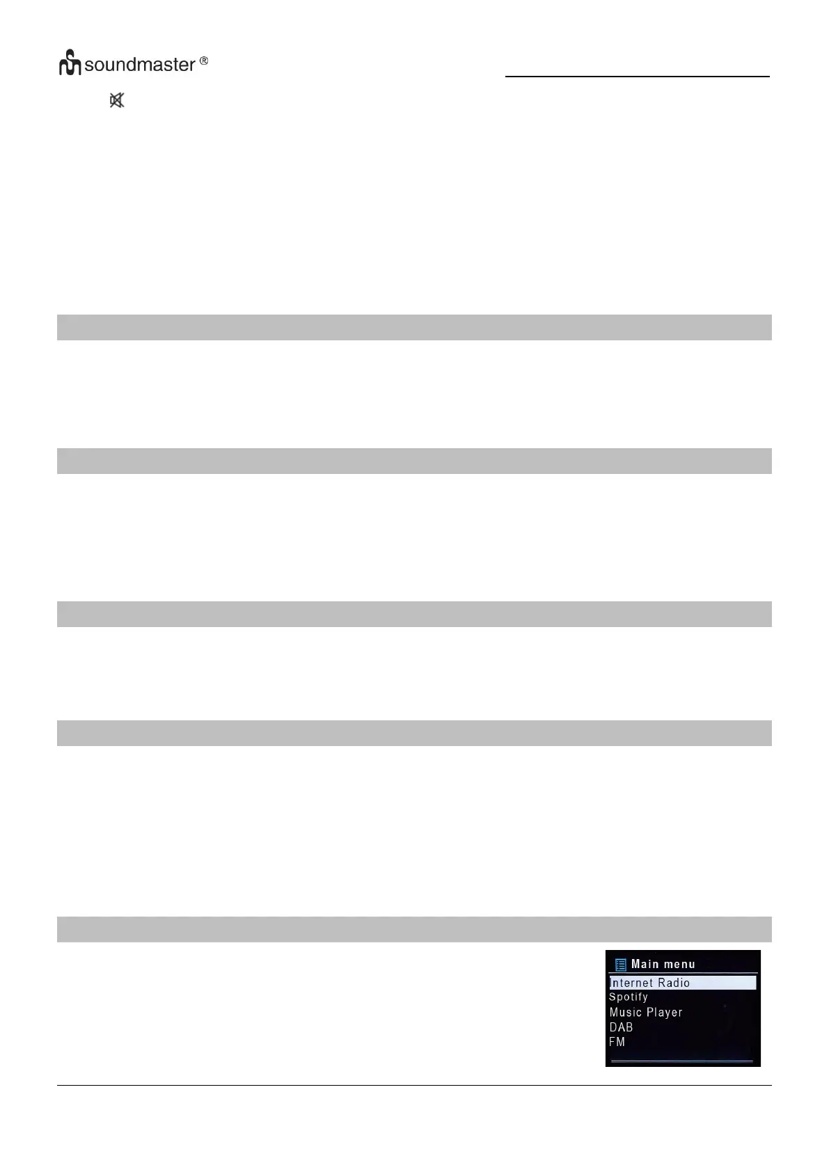 V hlavnej ponuke si môžete zvoliť nasledovné režimy: Internet Radio,