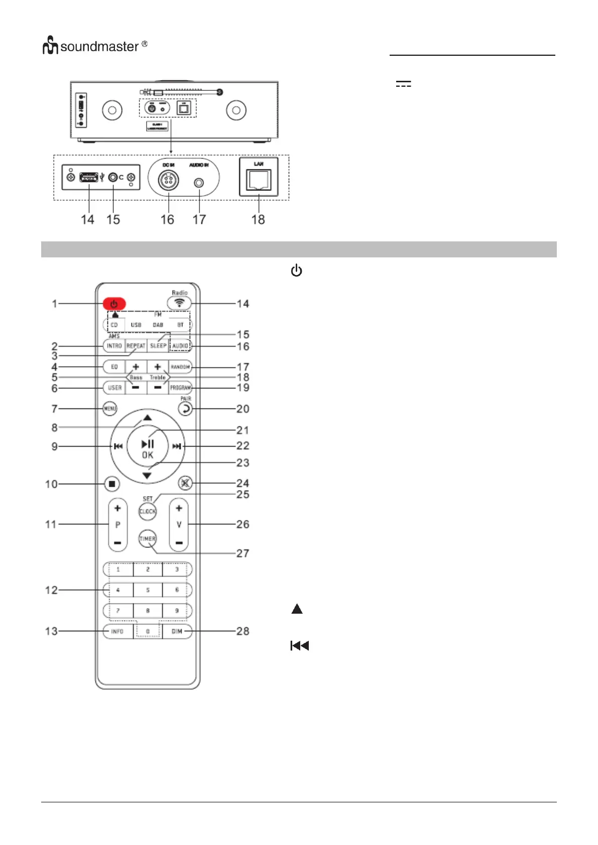 * Press to display the channel list in DAB, FM and