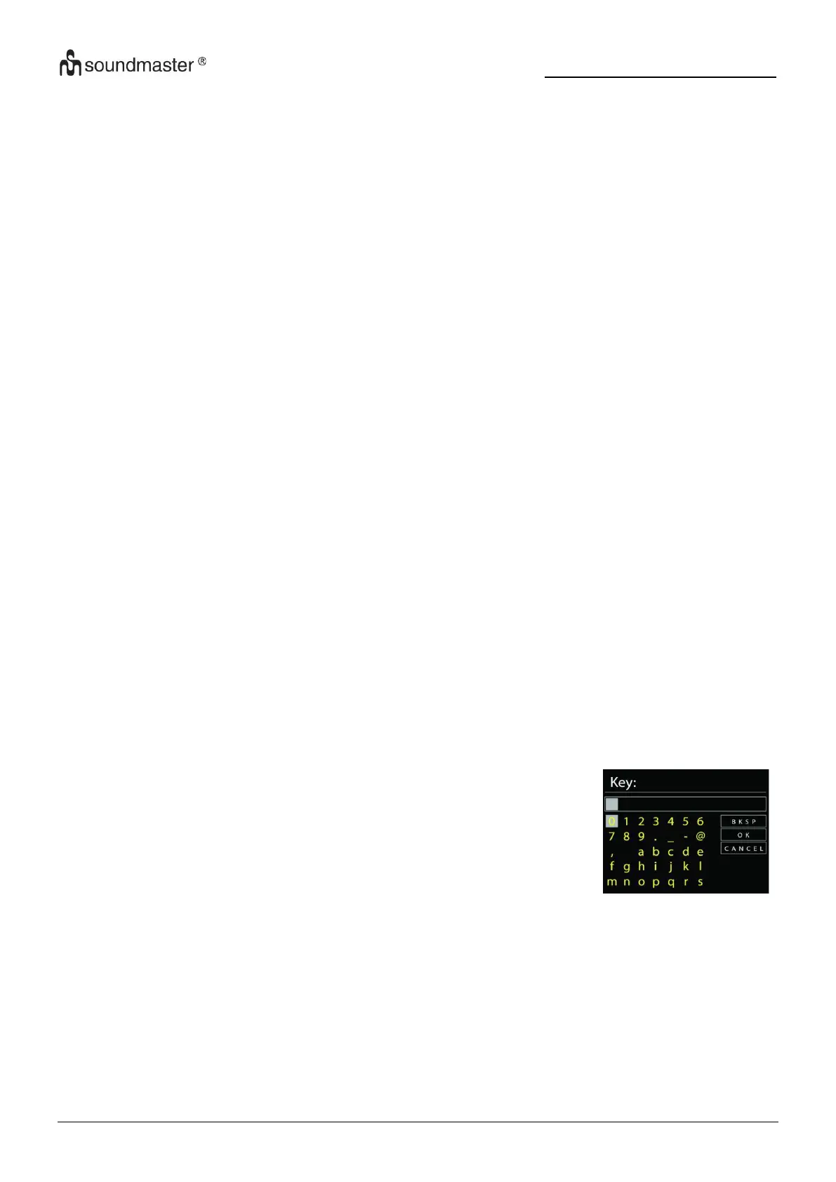 before the first characters – Backspace, OK and Cancel.