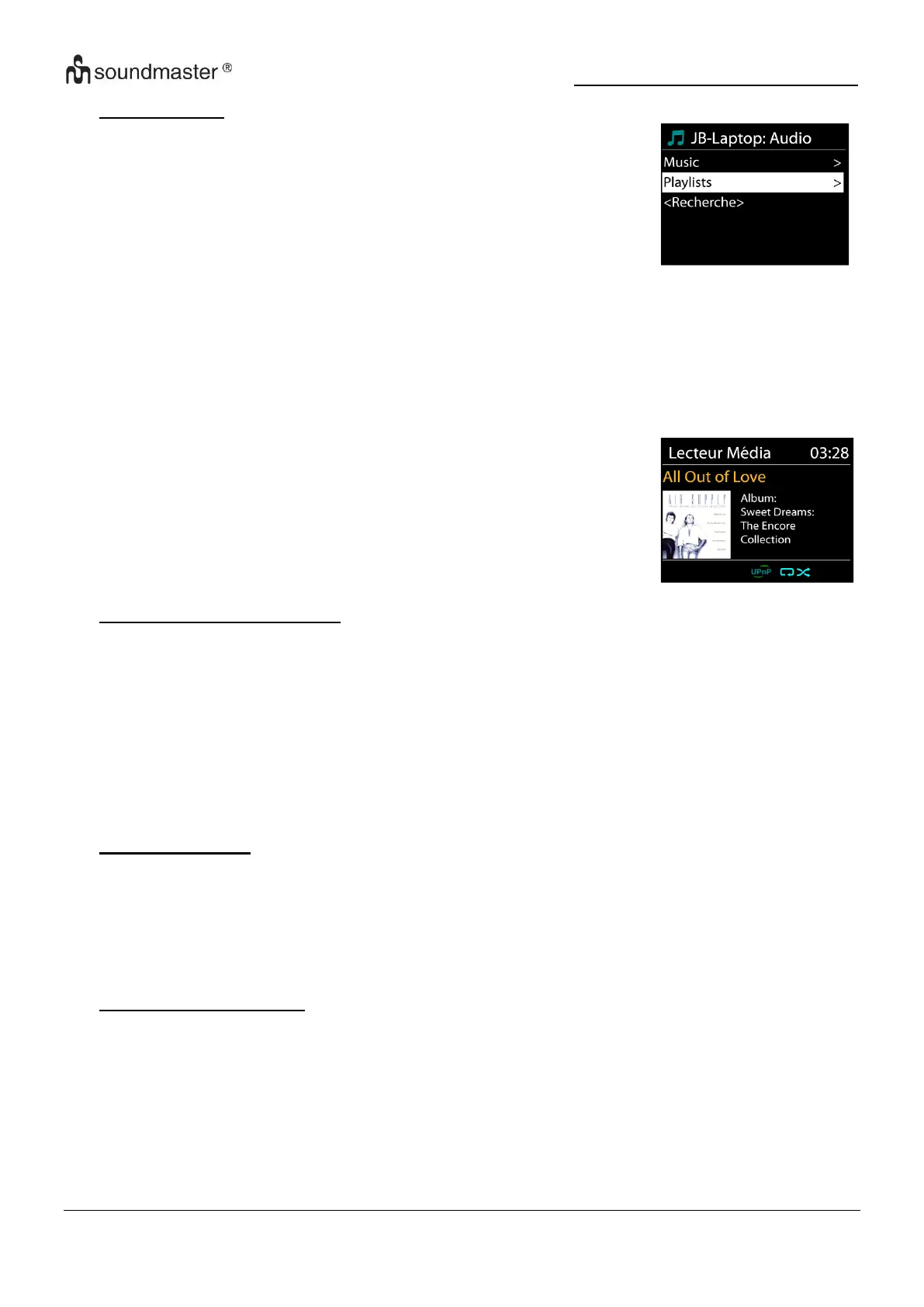 « Listes de lecture ». L’appareil ne peut lire que la musique et les listes de lecture.