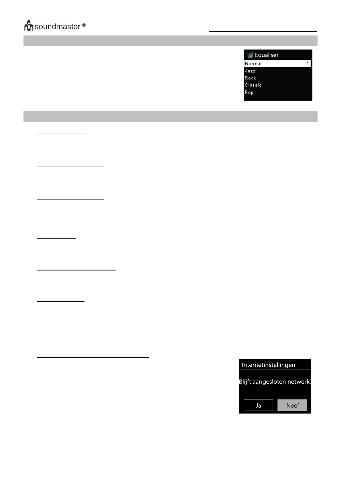 Er zijn verschillende vooraf ingestelde EQ-modi beschikbaar: