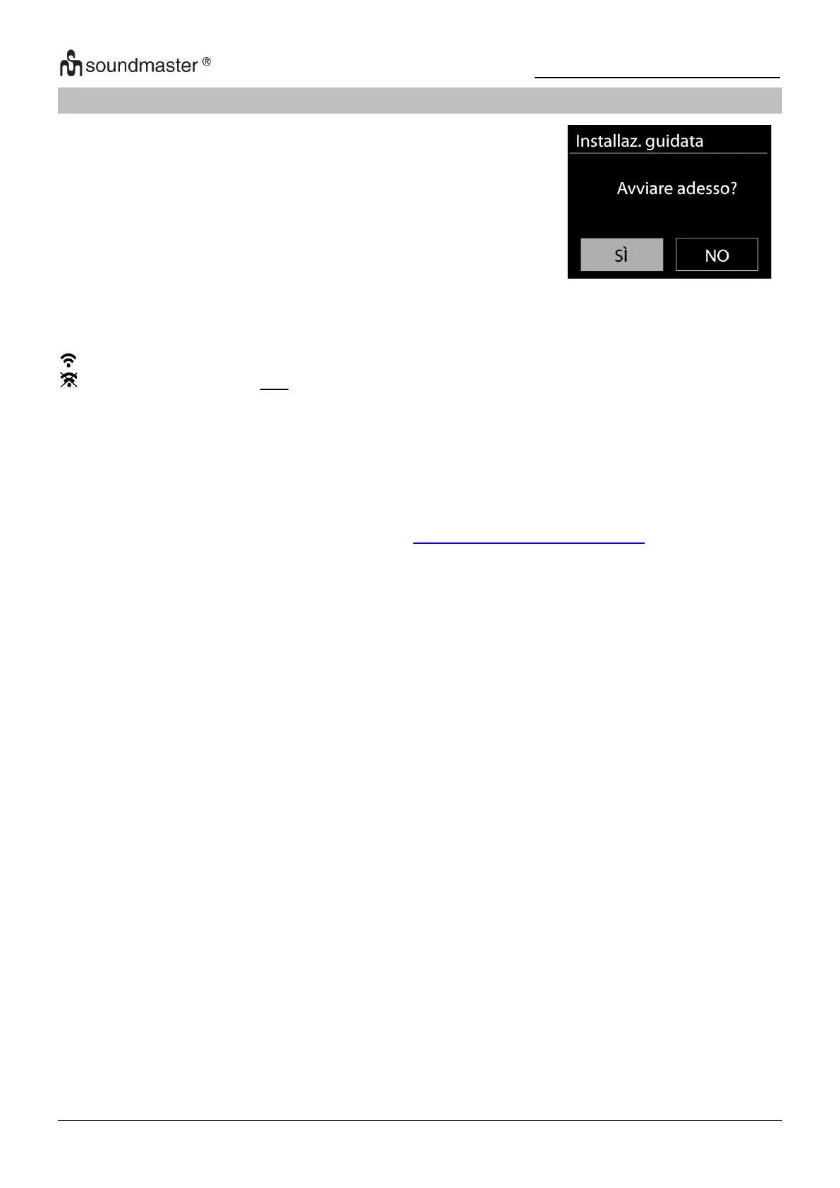 Selezionare l'opzione "SI" per continuare con la configurazione. Se si seleziona l'opzione