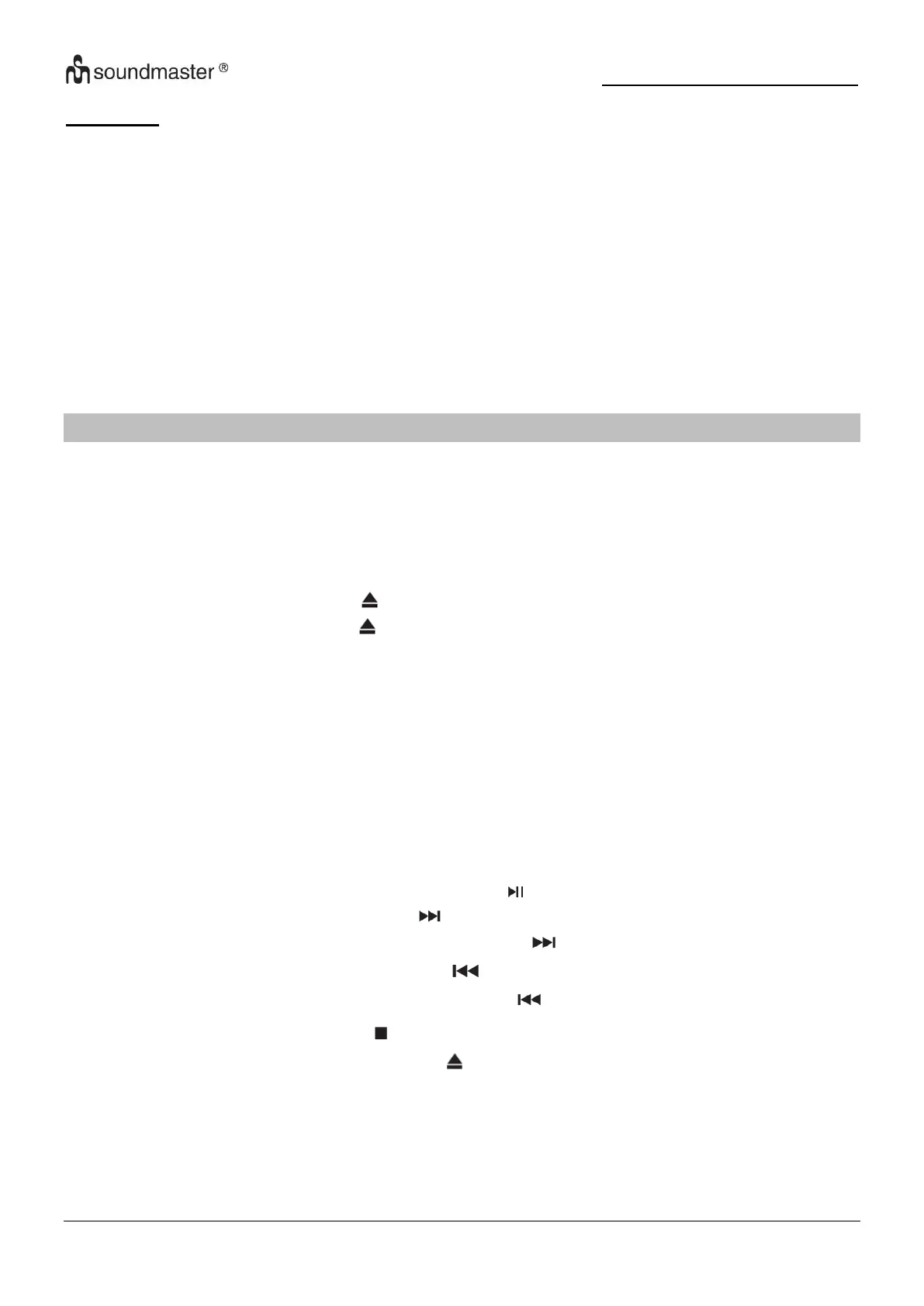 • To eject the disc press in stop mode the “ ” button on the unit.
