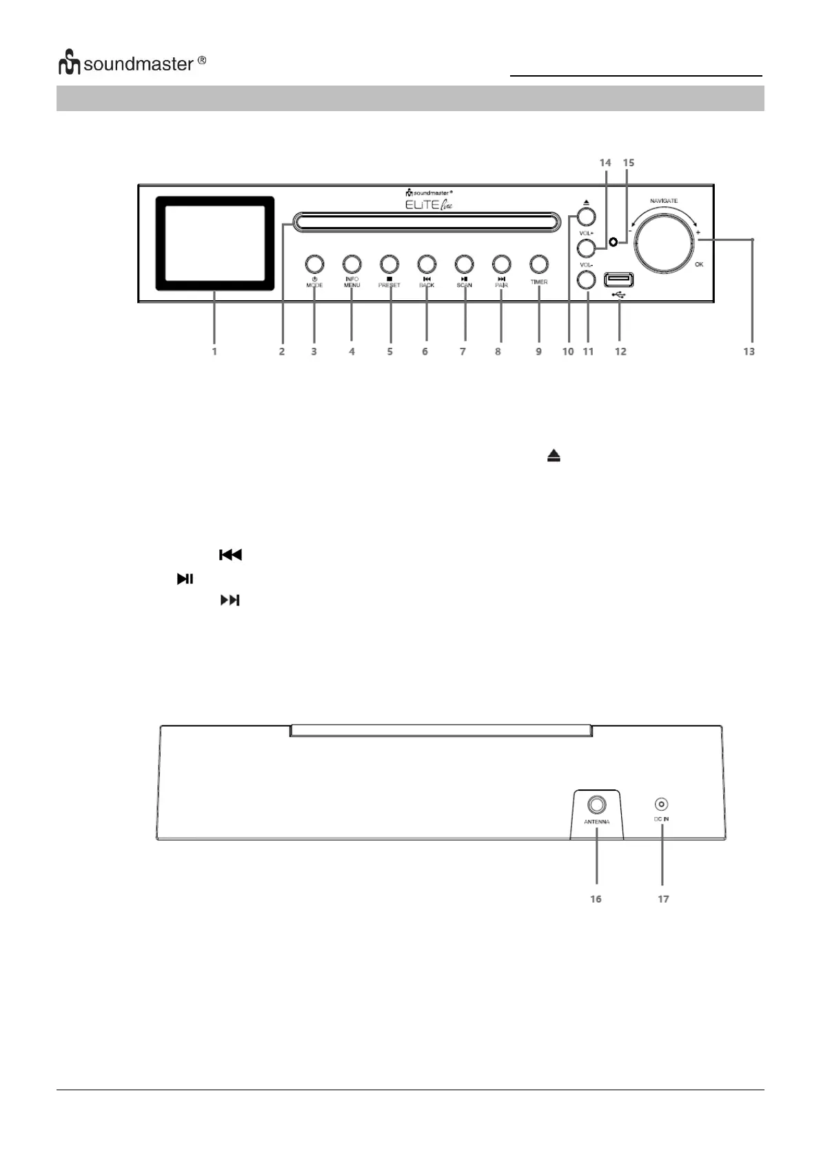 SOUNDMASTER ICD2200 - Emplacement des Commandes