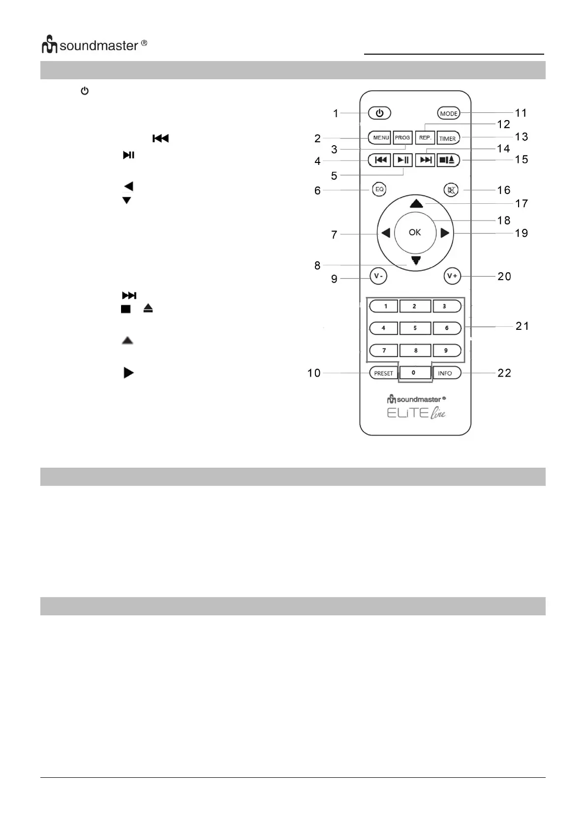 SOUNDMASTER ICD2200 - Contenu du Paquet; Télécommande; Utilisation de la Télécommande