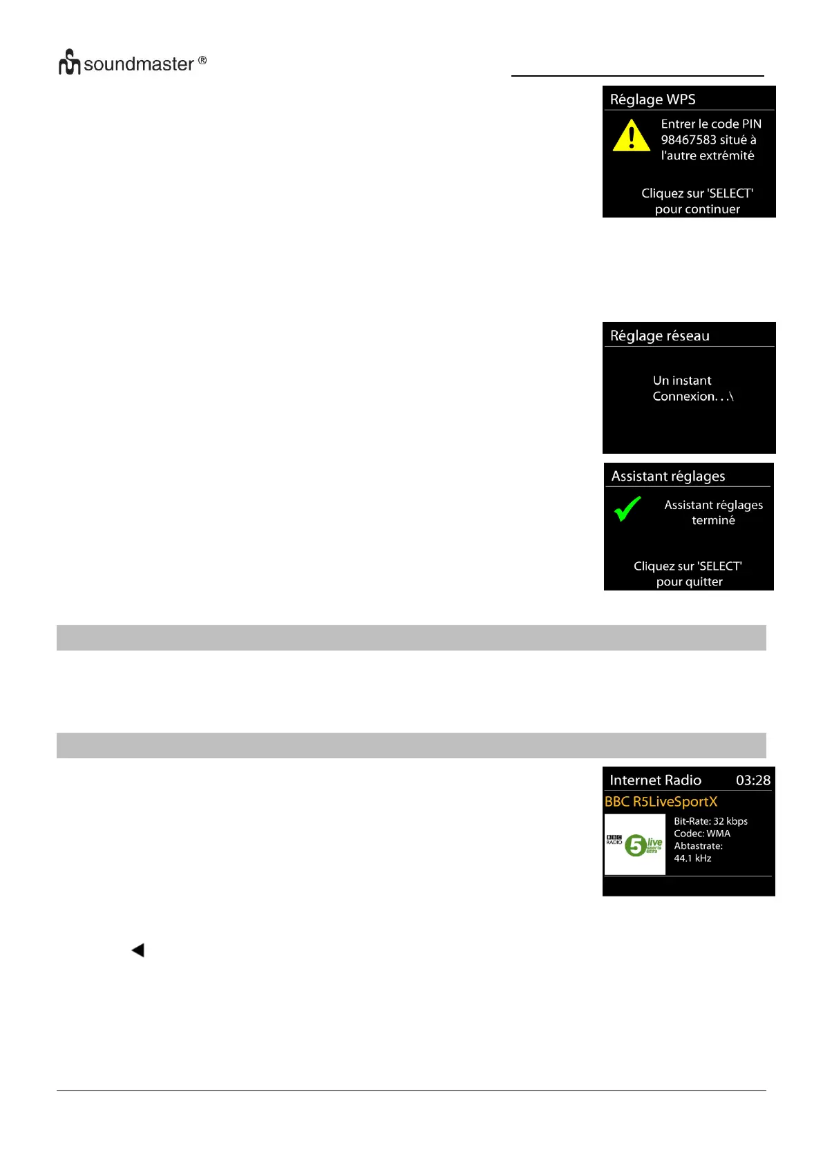 Lorsque vous sélectionnez la radio internet, l’appareil contacte