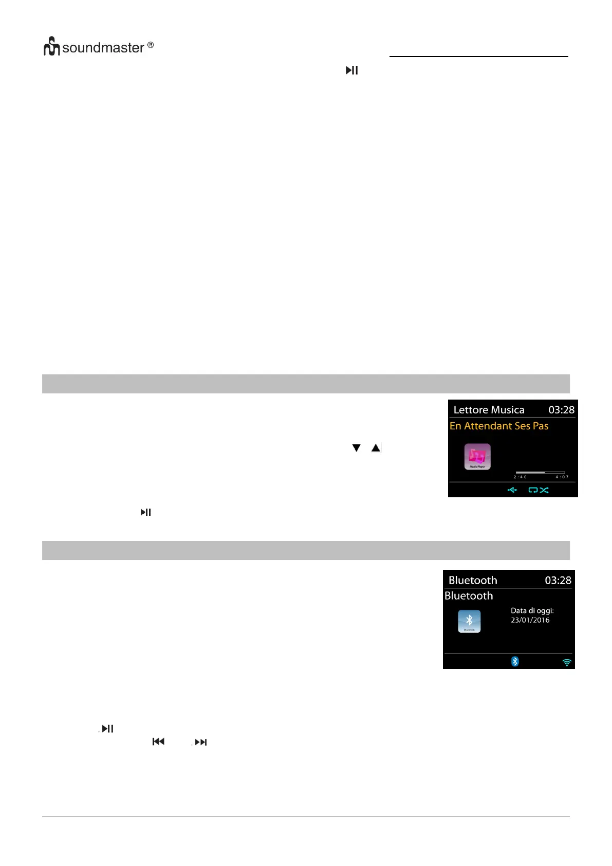 Premere " " sulla radio o sul telecomando per avviare o mettere in pausa la riproduzione. È