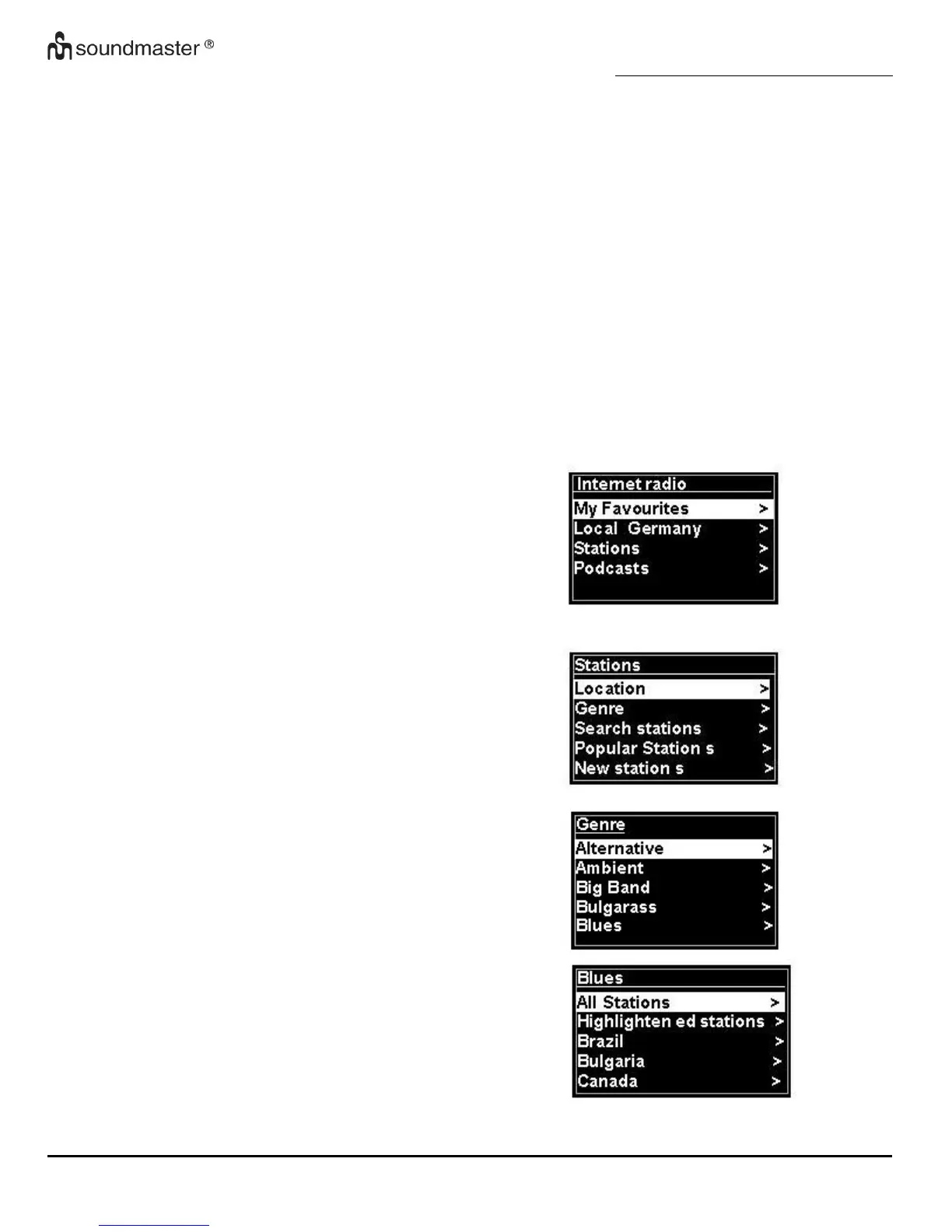 Favourites are stored on the Internet radio portal. Before you set up an account on the portal from its