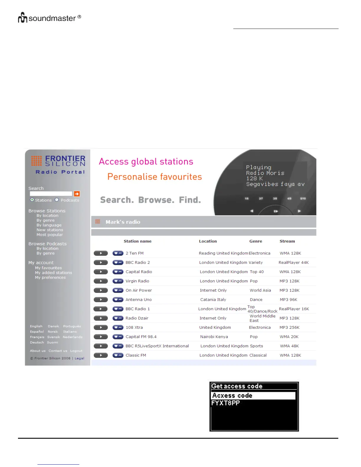 The Frontier Silicon Internet radio portal website allows you to organise your favourites lists and also