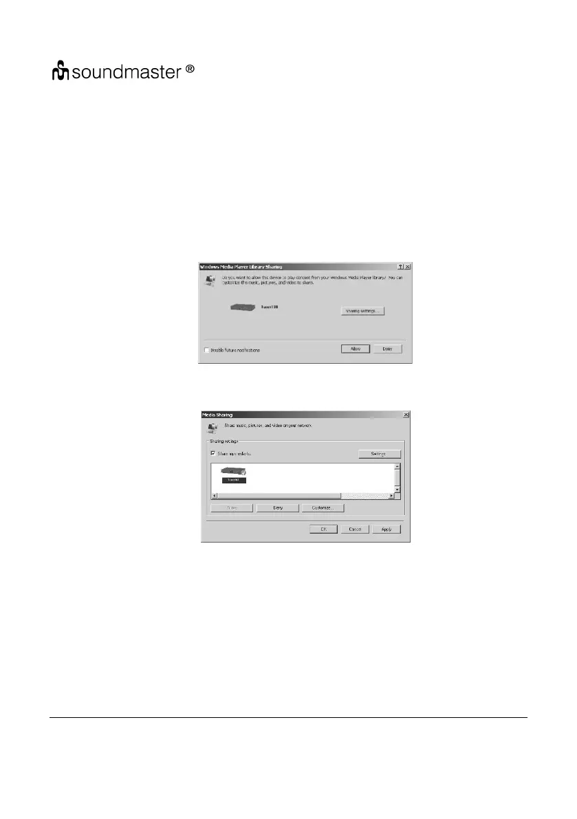 To share the music files from PC, the following steps are done on the PC: