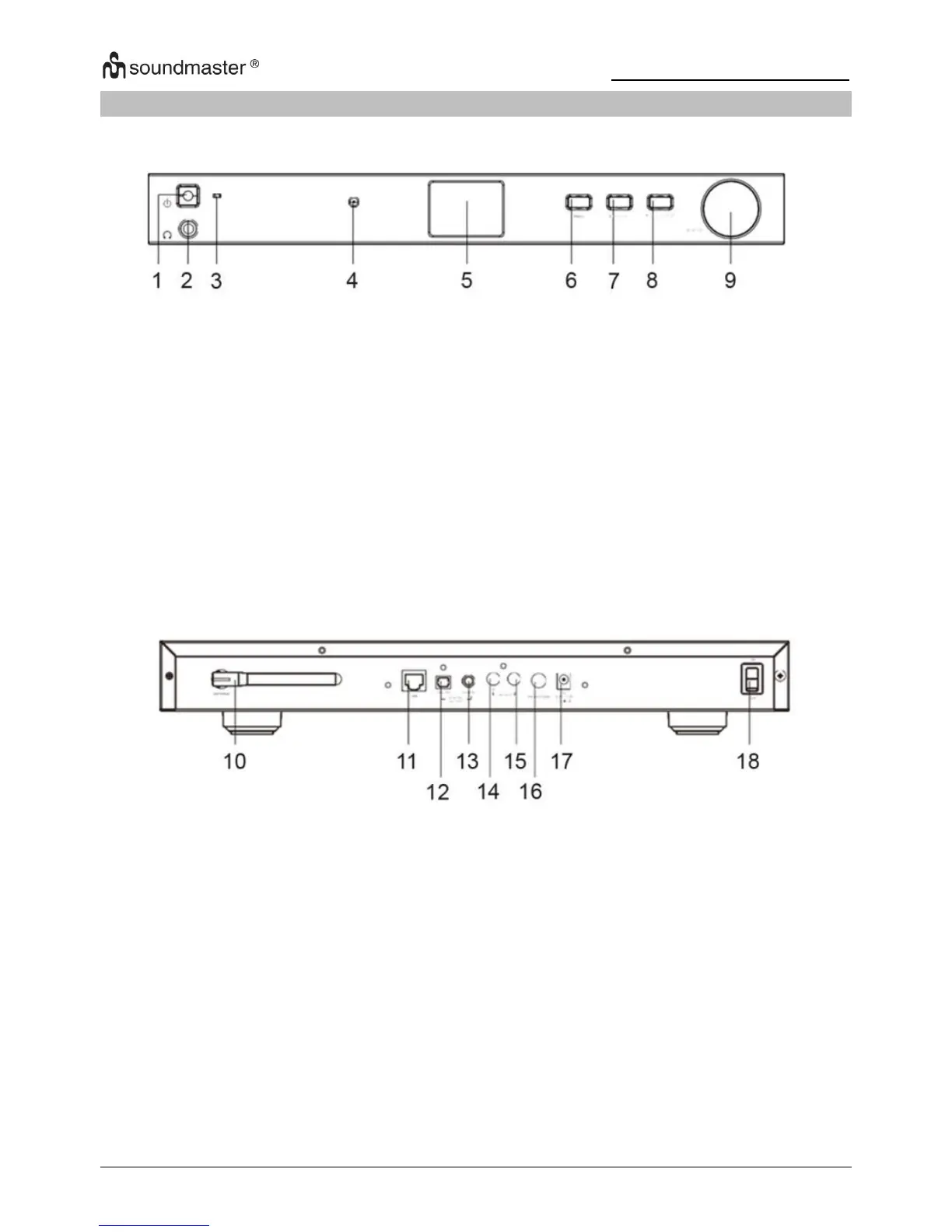 SOUNDMASTER IR45SW - Front View; Location of Controls; Rear View