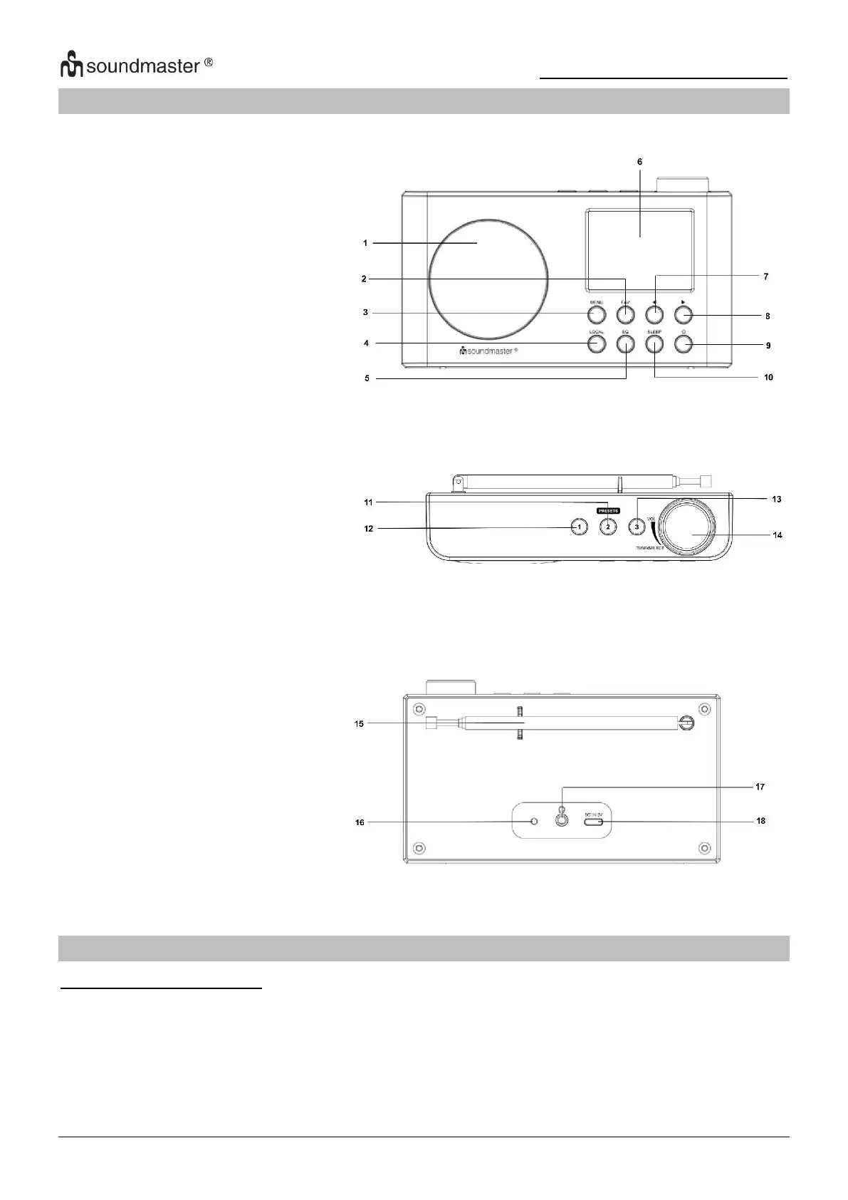 SOUNDMASTER IR6500 - Location of Controls; Installation