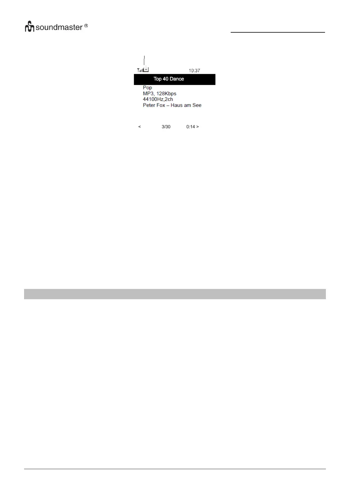 ➢ Rádio zobrazí kategorie médií dostupných na serveru UPnP, např. „Music“, „Playlists“ atd.