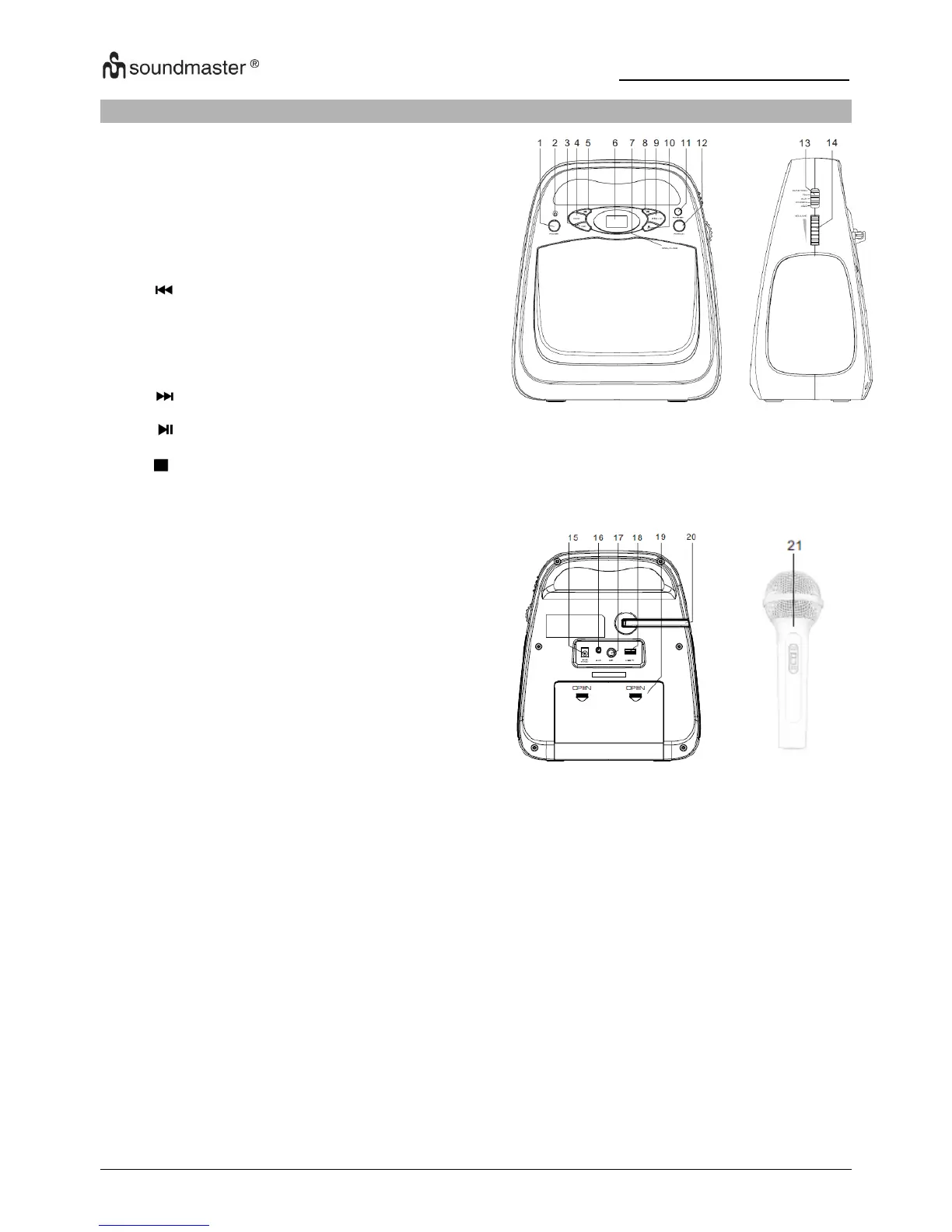 SOUNDMASTER KCD50 - Locations of Controls; Front Panel Controls; Rear and Side Panel Ports; Accessories