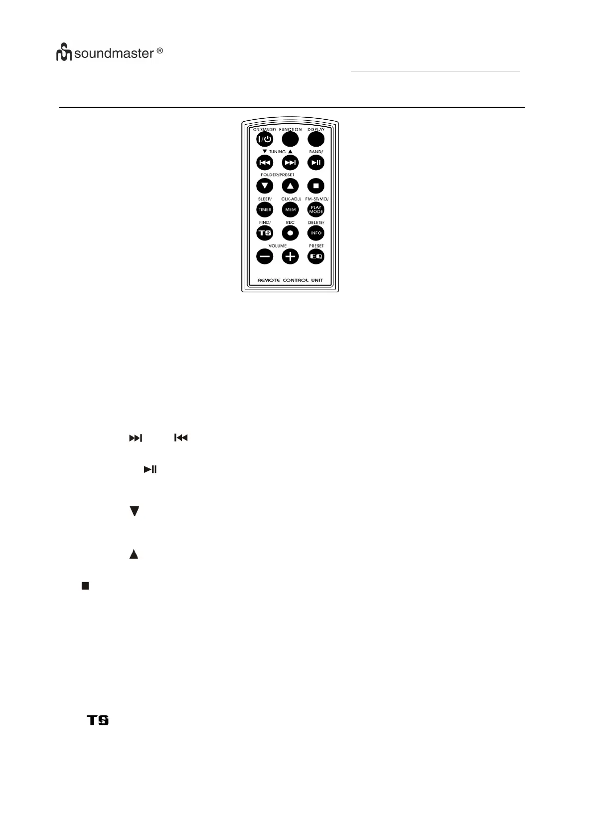 FOLDER/PRE-DN IN MP3/USB/SD MODE : PRESS TO SKIP DOWN THE ALBUM